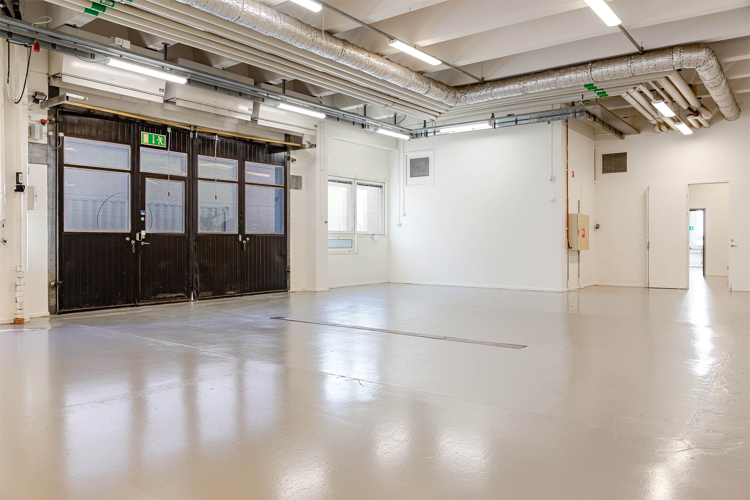 Industrifastighet i tre plan med en lagerlokal på 600 kvm på markplan, försedd med en markport och entredörr för enkel och smidig in- och utlastning. Lokalen erbjuder en flexibel öppen planlösning med några mindre kontorsrum och en generös takhöjd på 4,5 meter. Här finns även två WC, pentry samt goda möjligheter att anpassa ytan efter specifika behov.