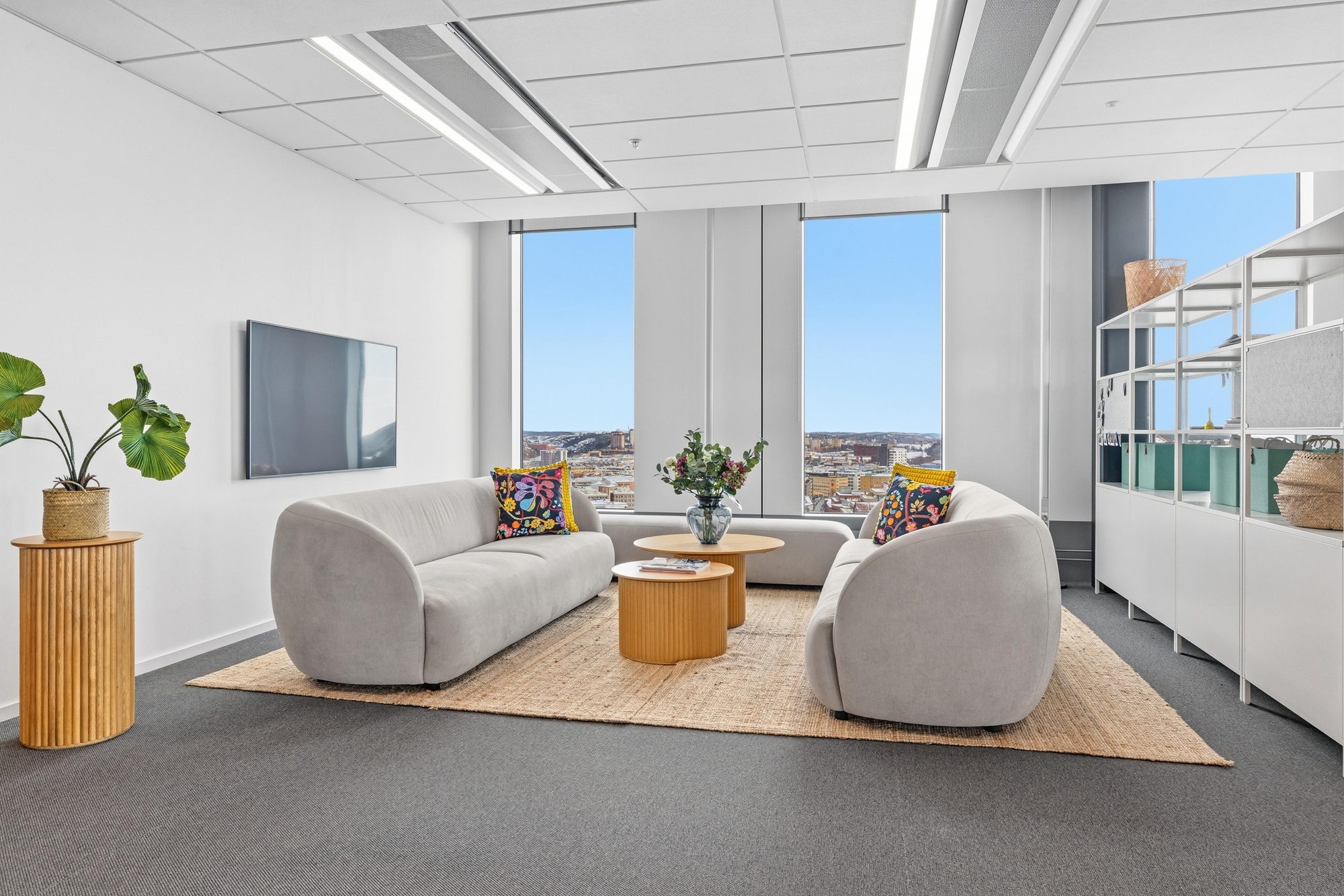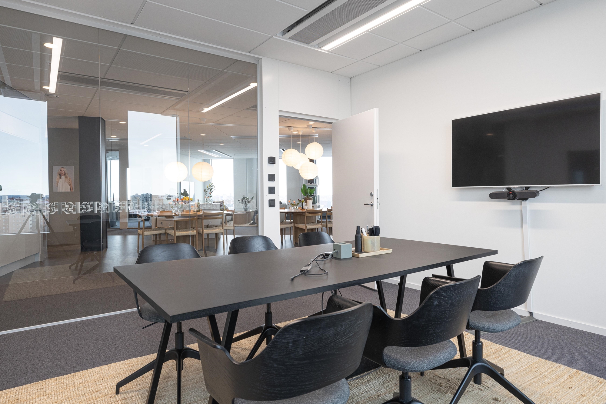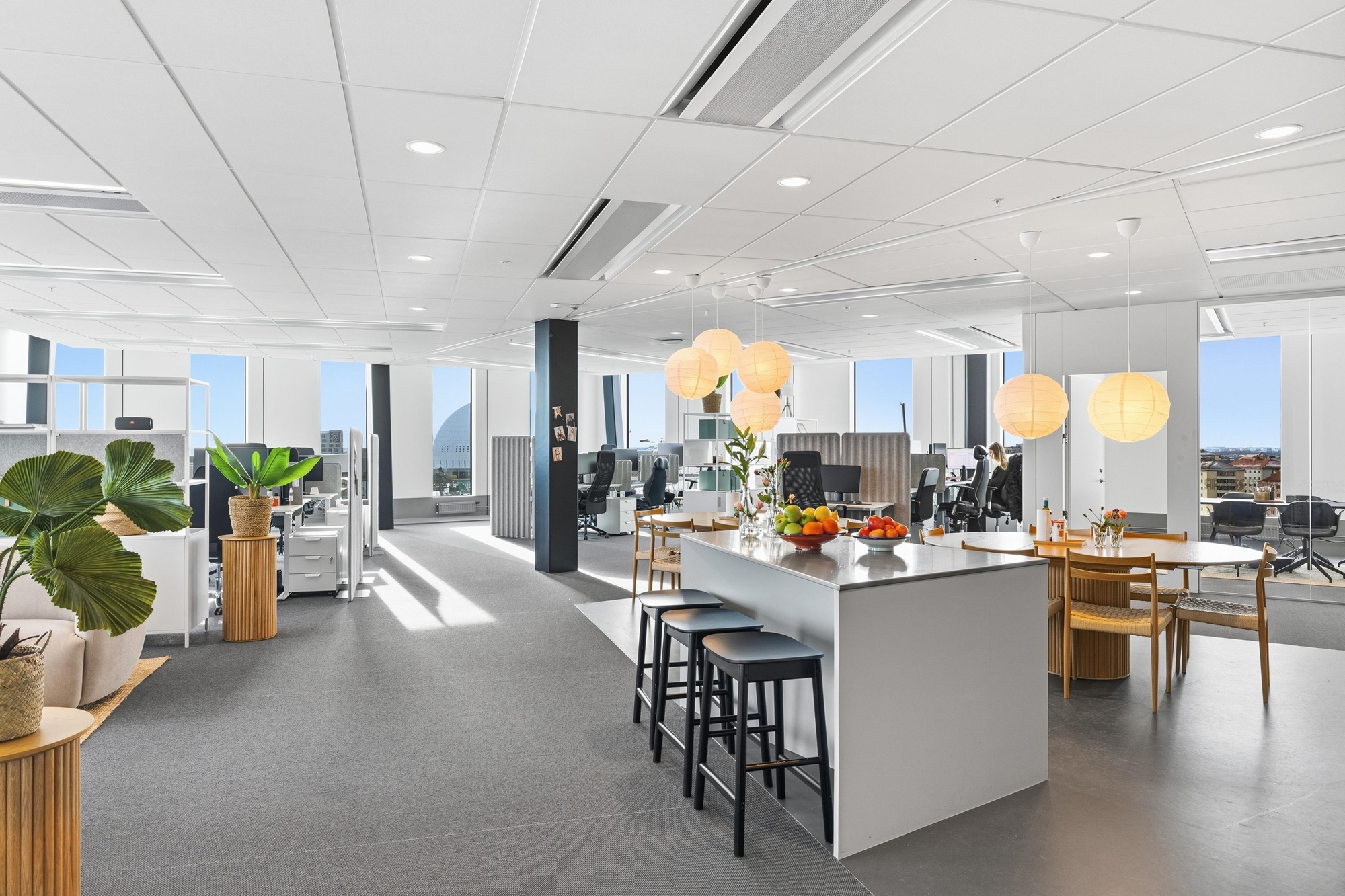 Lokalen befinner sig på våning 21, vilket genast märks när vi kliver in i lokalen. Milsvid utsikt över Stockholm med ett underbart ljusinsläpp!