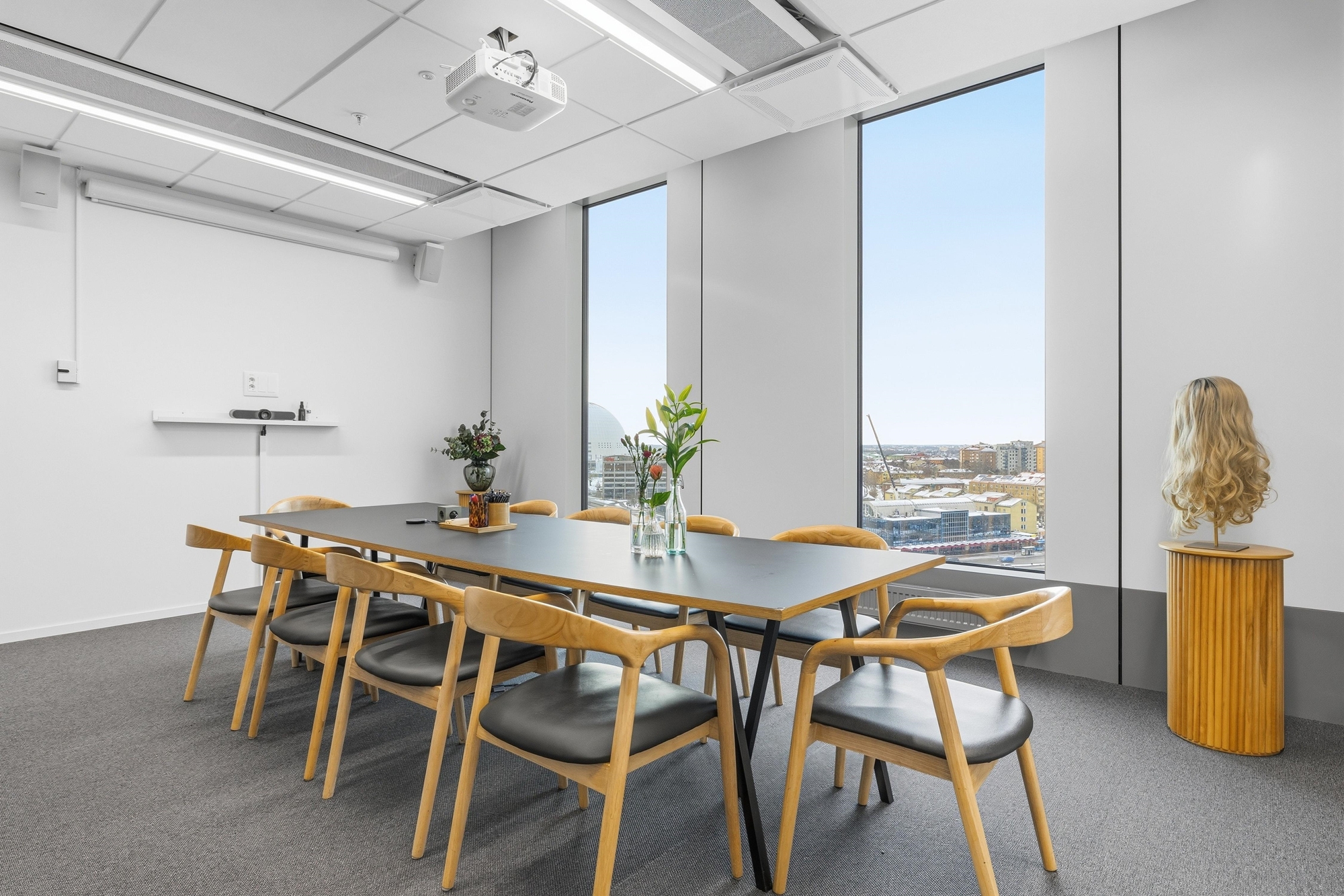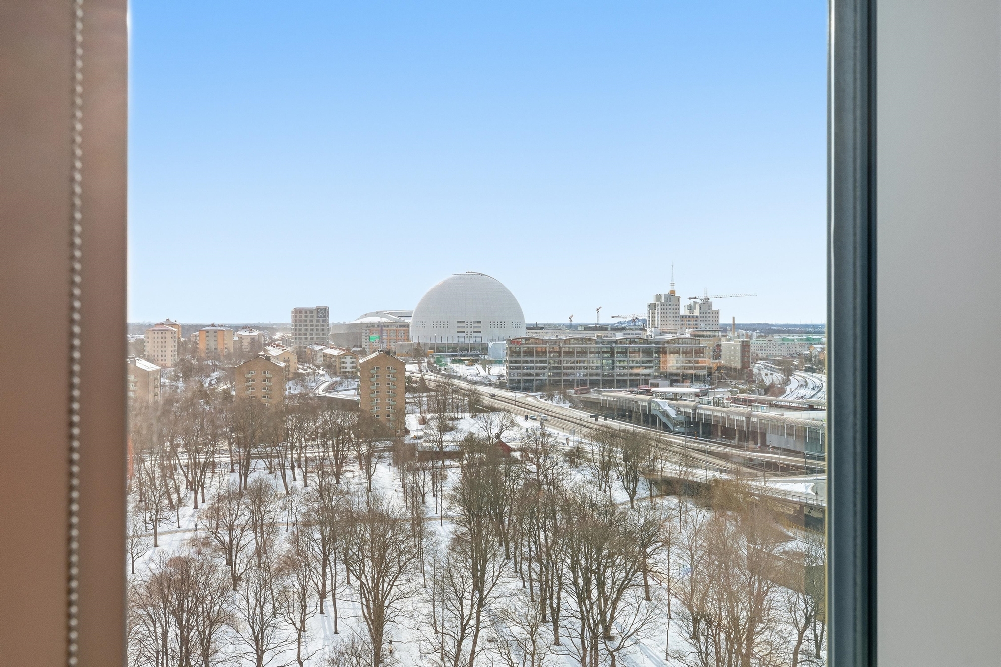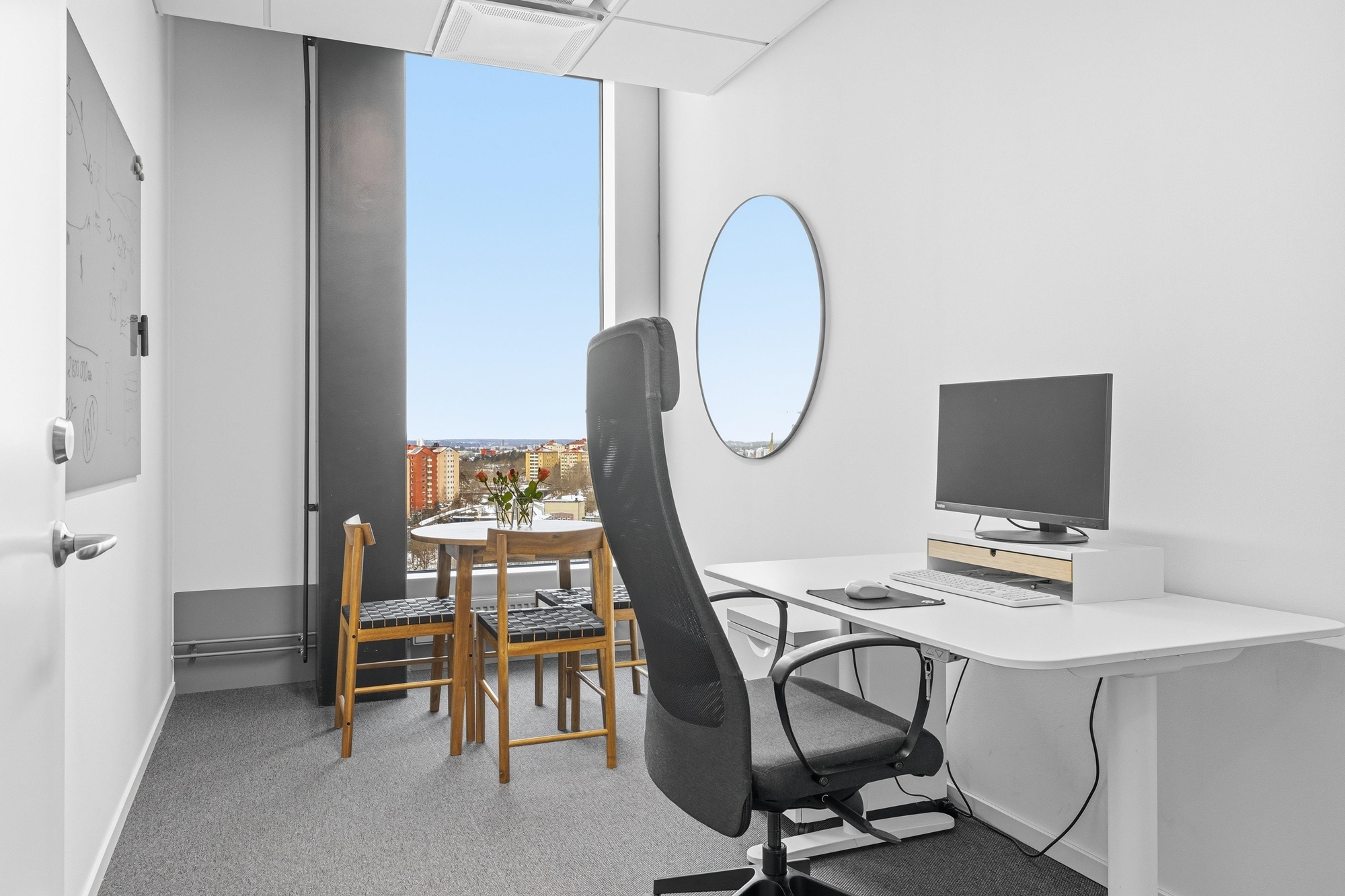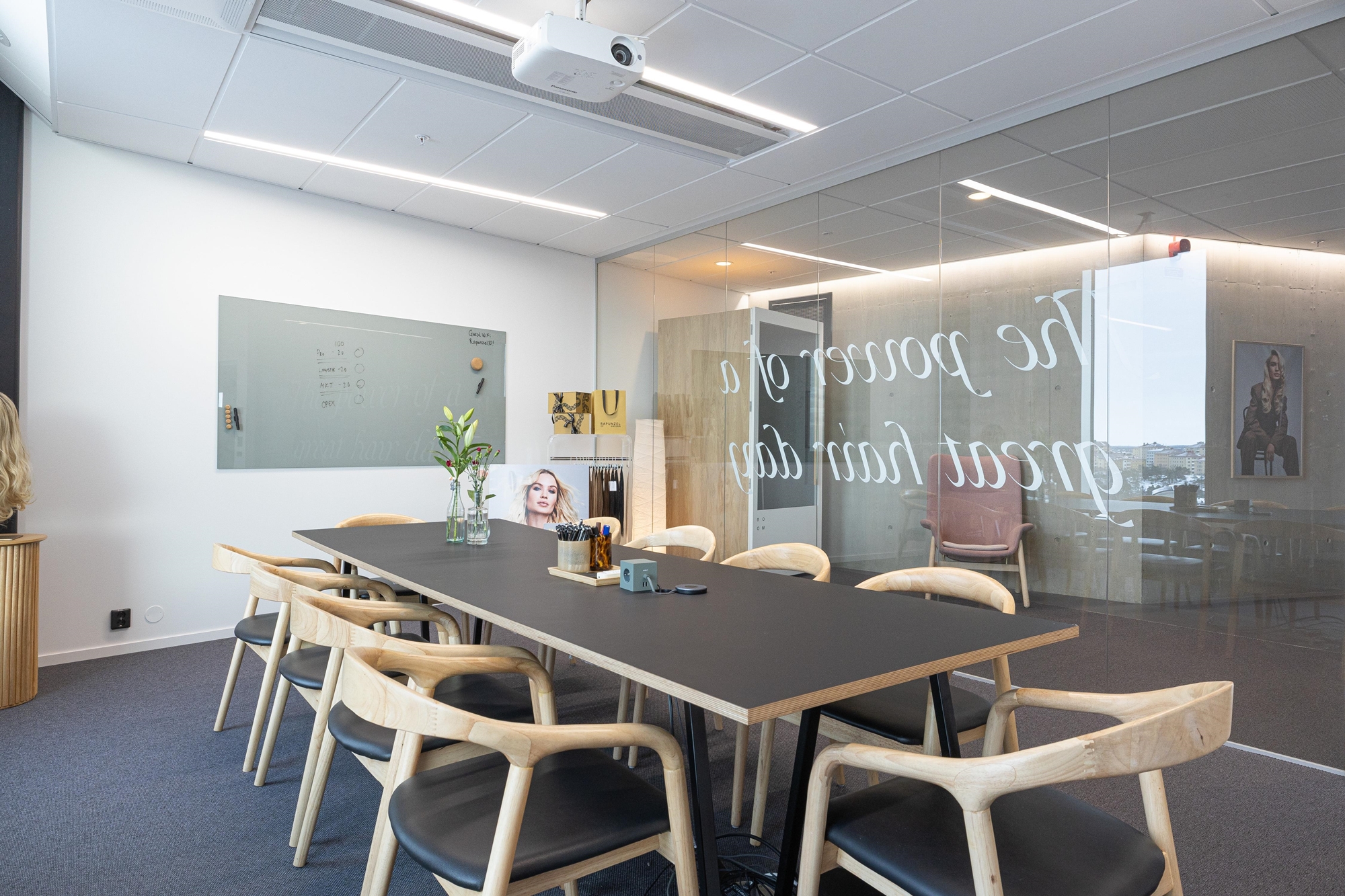 Lokalen befinner sig på våning 21, vilket genast märks när vi kliver in i lokalen. Milsvid utsikt över Stockholm med ett underbart ljusinsläpp!
