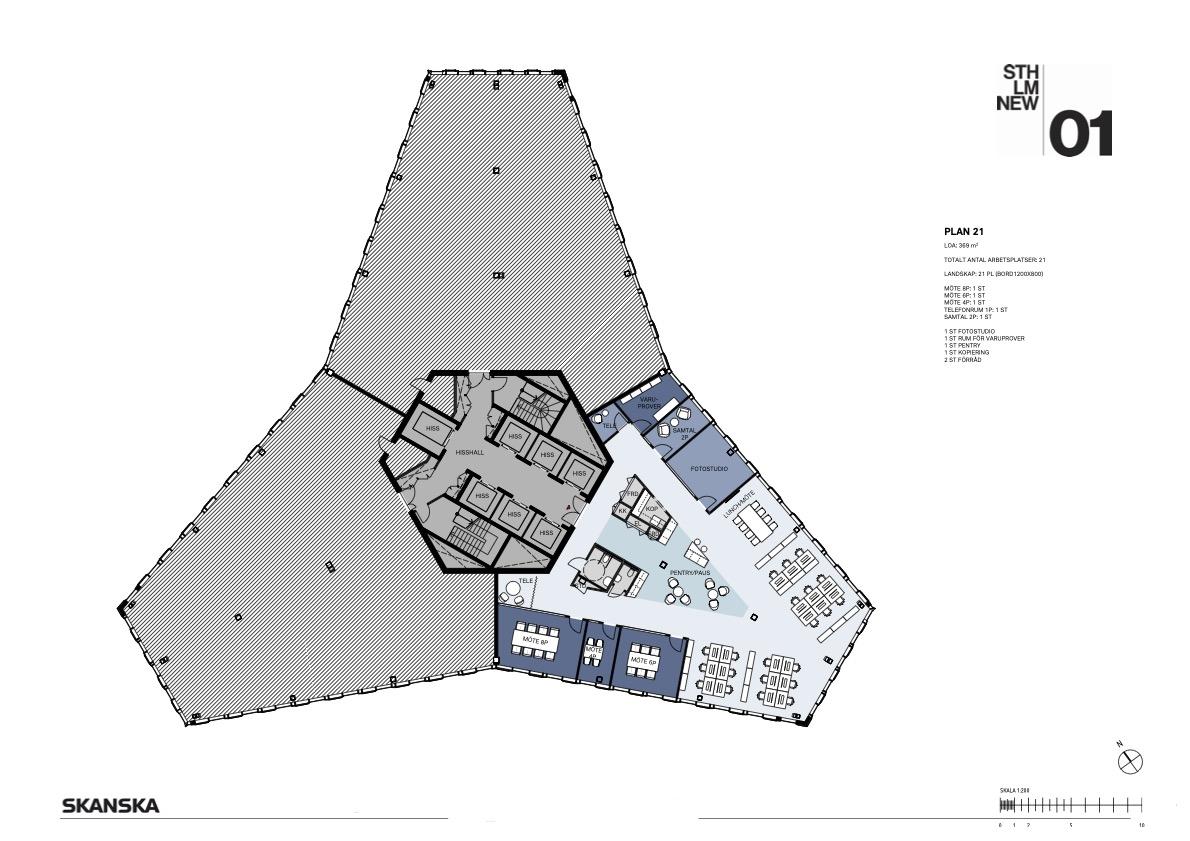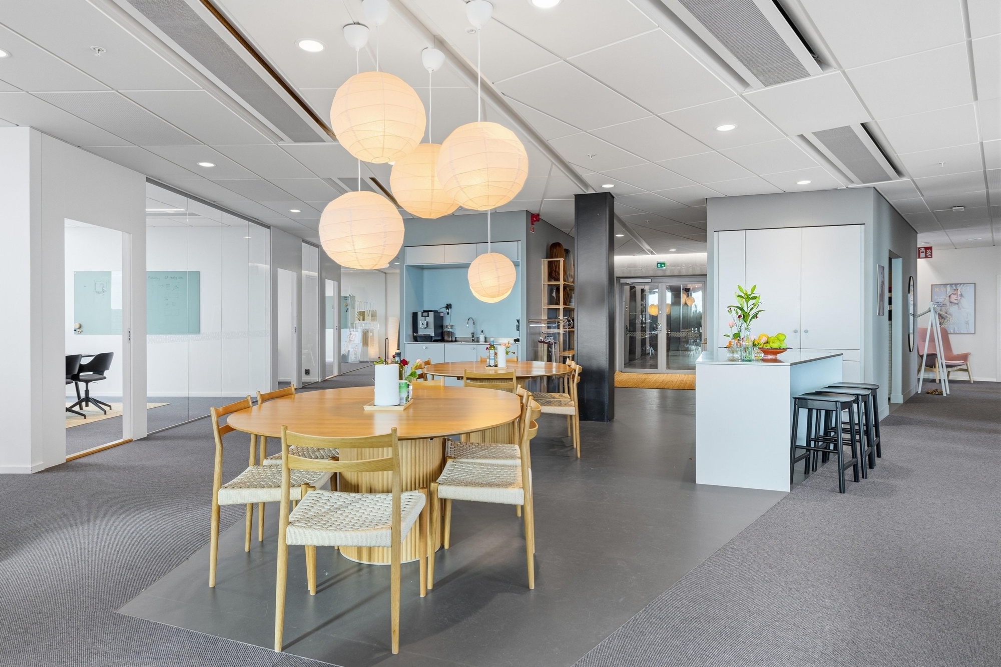 Överlag en öppen planlösning i kombination med olika storlekar för mötes/konferensrum. Två toaletter och trevligt pentry!