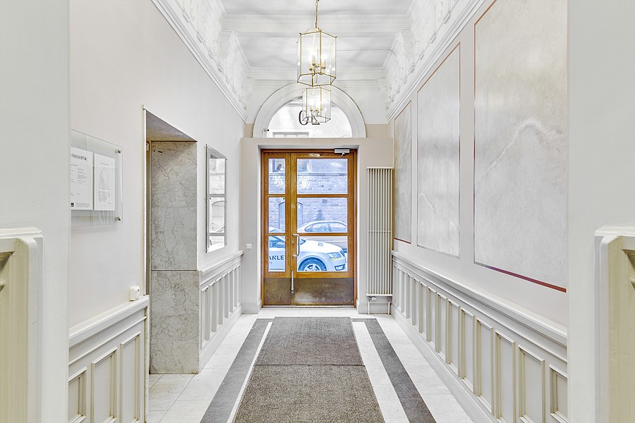 Besökare välkomnas av en vacker och inbjudande huvudentré. Lokalen nås smidigt via två hissar: en besökarhiss samt en större internhiss, utöver trapphus.