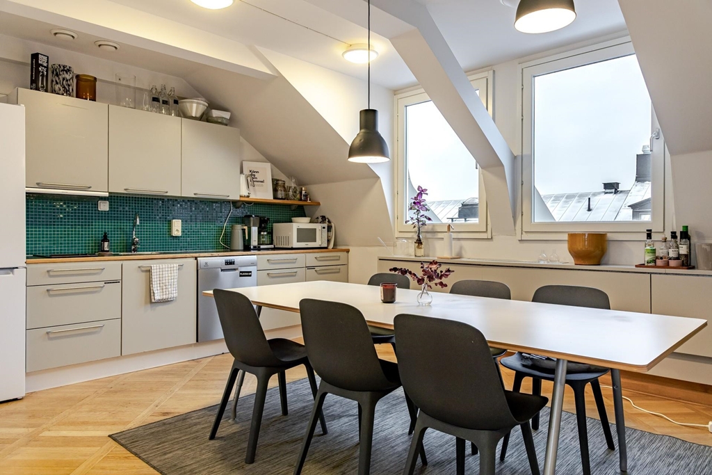 Välkommen till en unik möjlighet att hyra en ljus, stilfull och representativ lokal belägen högst upp i huset med en fantastisk vy över Stockholms takåsar. Här möts funktion, design och trivsel i en perfekt kombination.