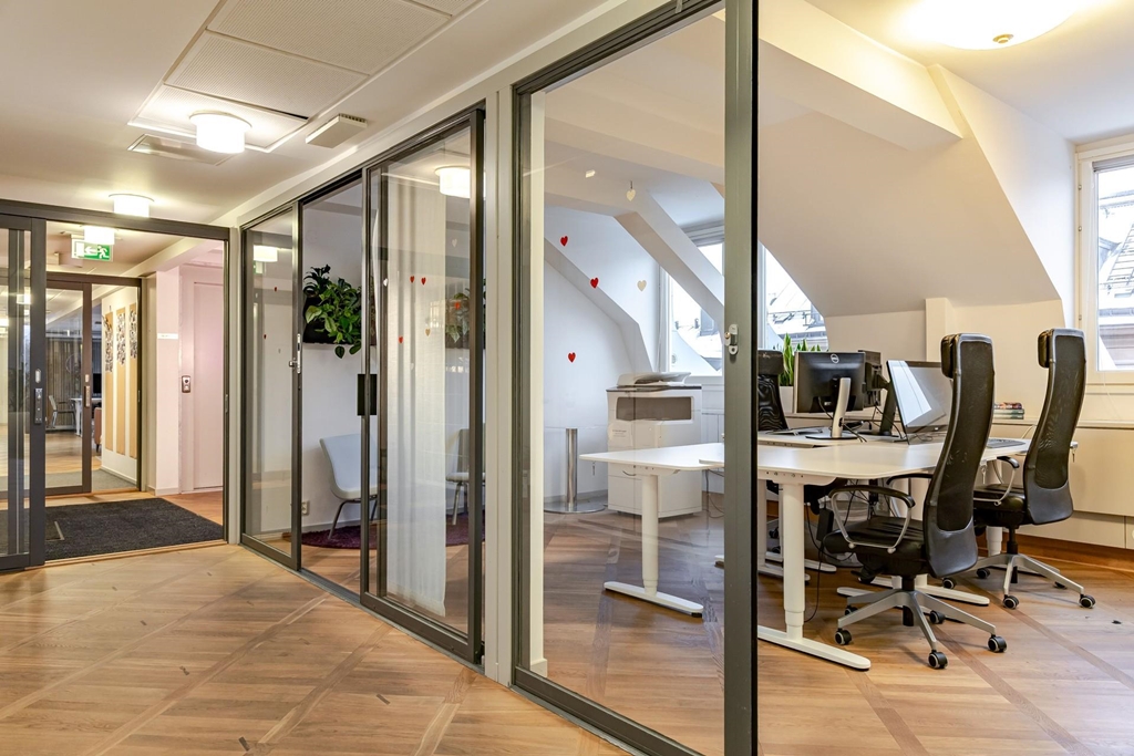 Här finns gott om mötesrum och utrymmen för brainstorming och kreativa processer. Dessutom är lokalen utrustad med tre WC, varav en med dusch perfekt för den som cyklar till jobbet eller vill fräscha upp sig under dagen.