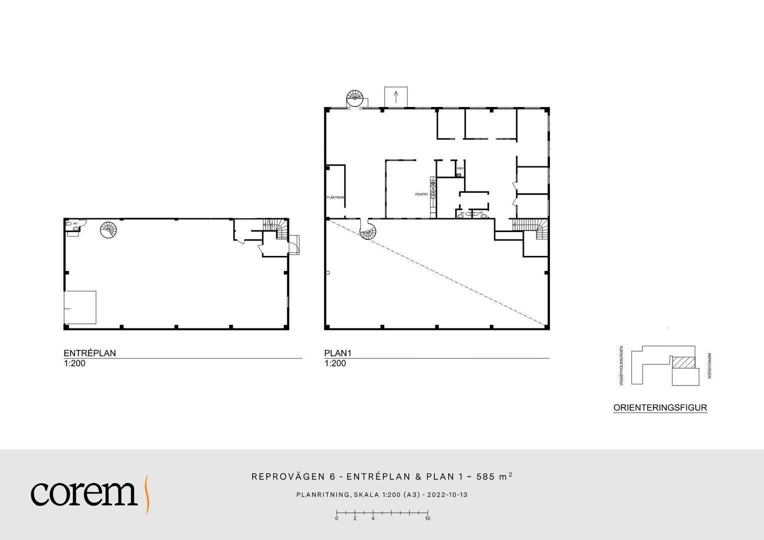 Entréplan omfattar ca 277 kvm höglager med generös takhöjd, markport för smidig in- och utlastning samt goda ytor för produktion, montering eller lagerhållning. Plan 1 om ca 308 kvm rymmer ljusa och öppna kontorsytor, mötesrum, pentry och sociala ytor. De stora fönsterpartierna skapar en trivsam arbetsmiljö med gott om dagsljus. Det finns goda möjligheter att anpassa ytorna för att passa just din verksamhets specifika behov.