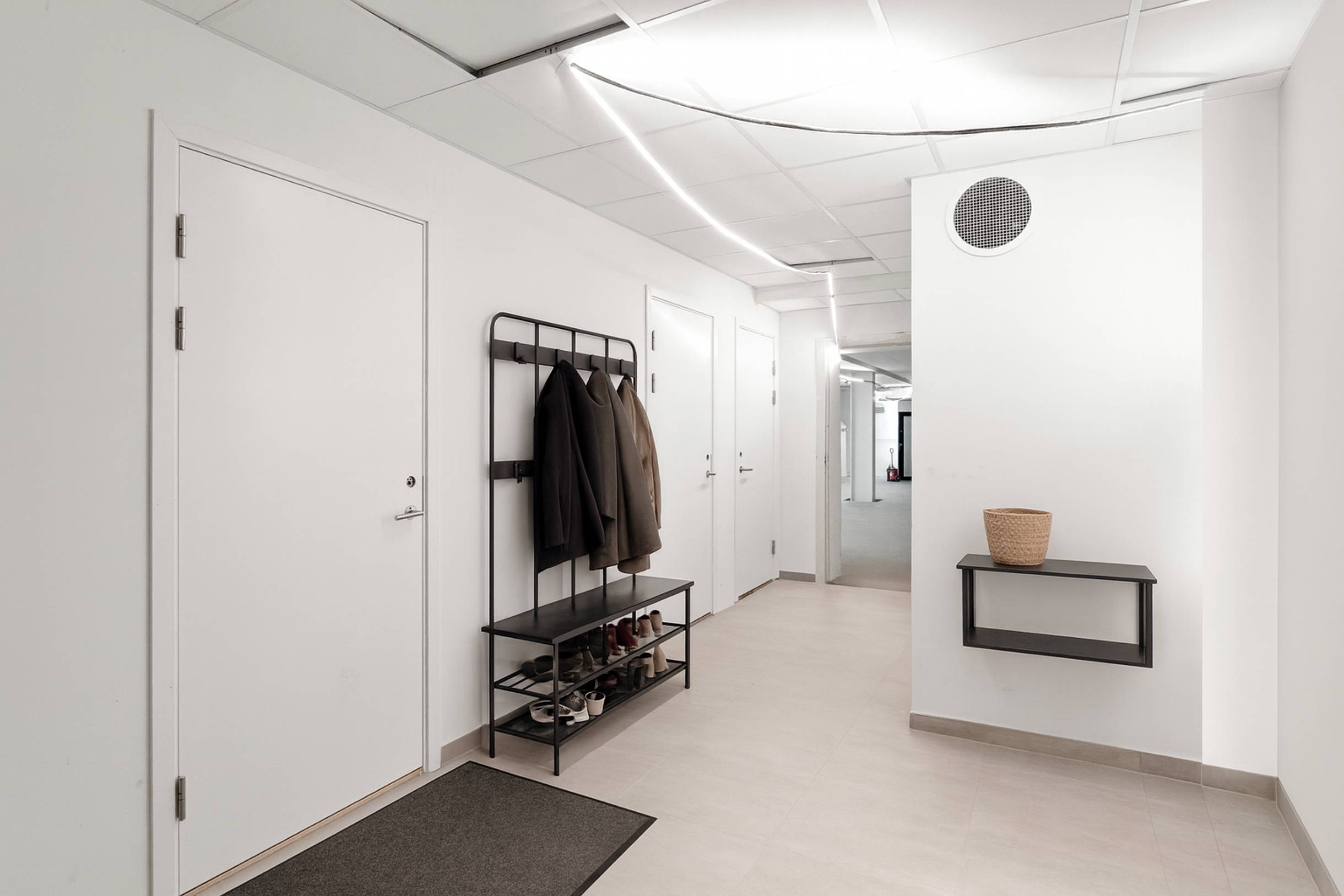 Här finns även en nyinstallerad dusch och toalett, utförda i steninspirerat kakel som lyfter standarden och bidrar till en exklusiv atmosfär. De öppna ytorna kompletteras av flera mindre rum som passar perfekt som teknikrum, förråd eller tysta arbetsplatser.