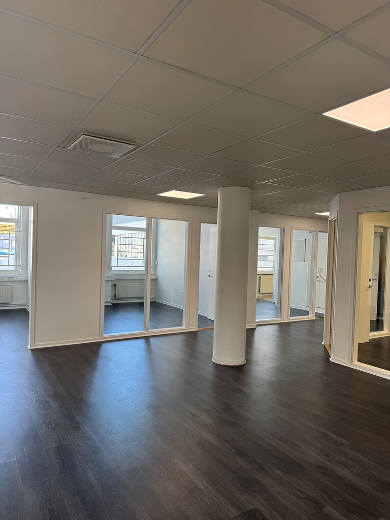 Nuvarande planlösning består av flera kontorsrum, mötesrum, pentry, lounge, toaletter och förråd. Lokalen kan anpassas i dialog med hyresgäst.