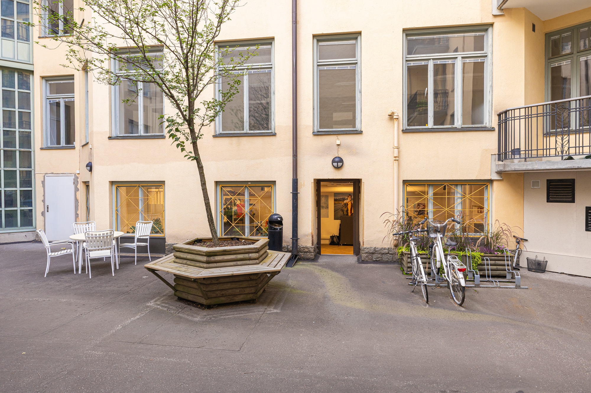 -En yta i markplan med direktingång från gatan, denna yta består utav en ett öppet kontorslandskap, loungedel, samt direktingång till innergården