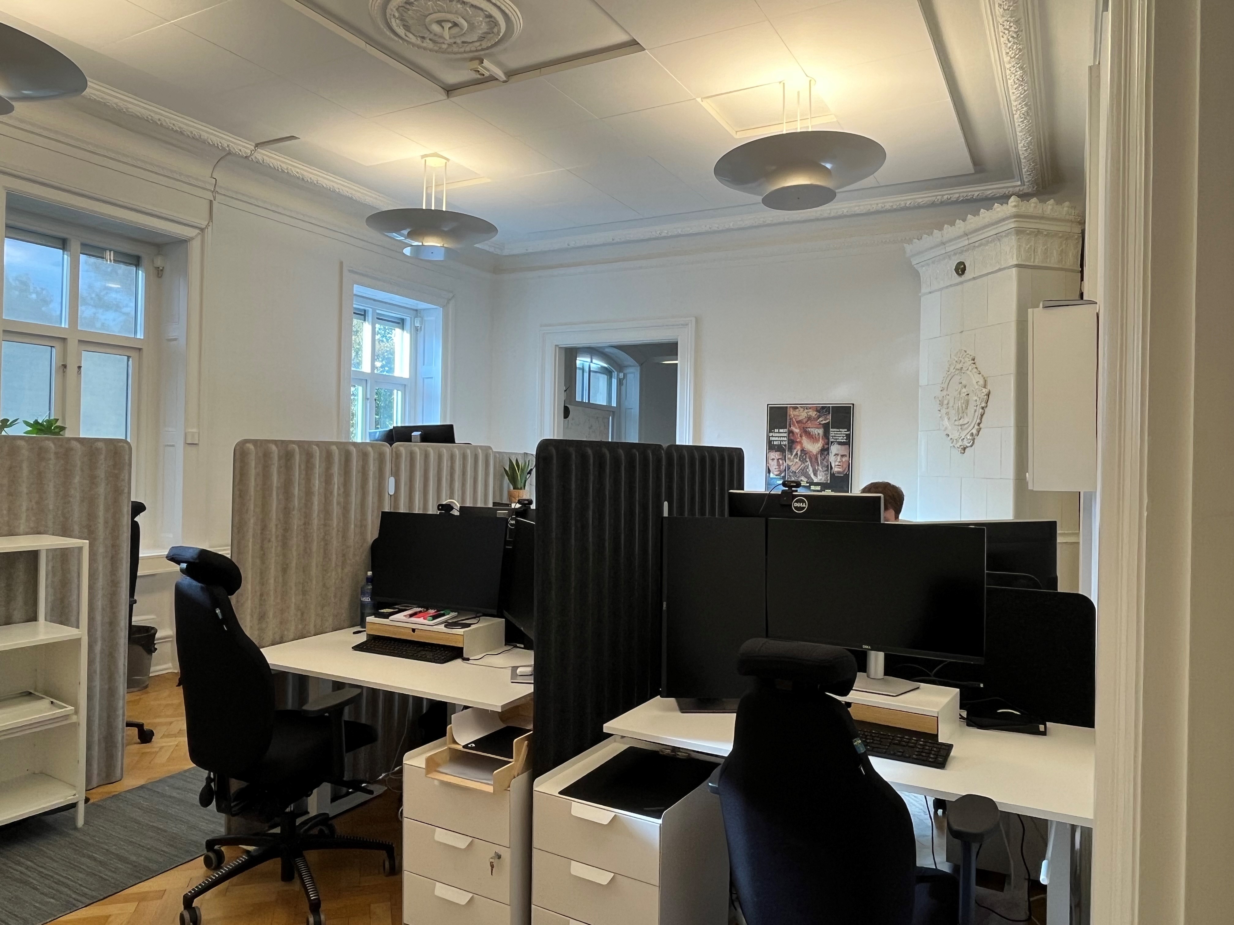 Trevlig kontorslokal i anrik fastighet mitt på Gustav Adolfs torg i Malmö. Här erbjuds en sekelskifteslokal med mycket karaktär och underbar utsikt över Gustav Adolfs torg. Lokalen erbjuder högt i tak med öppen känsla. Totalt finns det sju rum i varierande storlekar i lokalen. Flera av rummen kan användas till öppen sittning där det får plats från 4-8 medarbetare. I lokalen finns även rum som passar som enmanskontor. I mitten av lokalen finns ett större kök med plats för sittning. Toaletter samt dusch finns att tillgå.