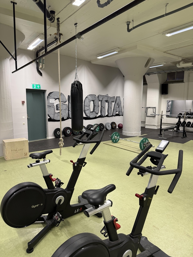 Cykelgarage, mindre gym och omklädningsrum finns i fastigheten.