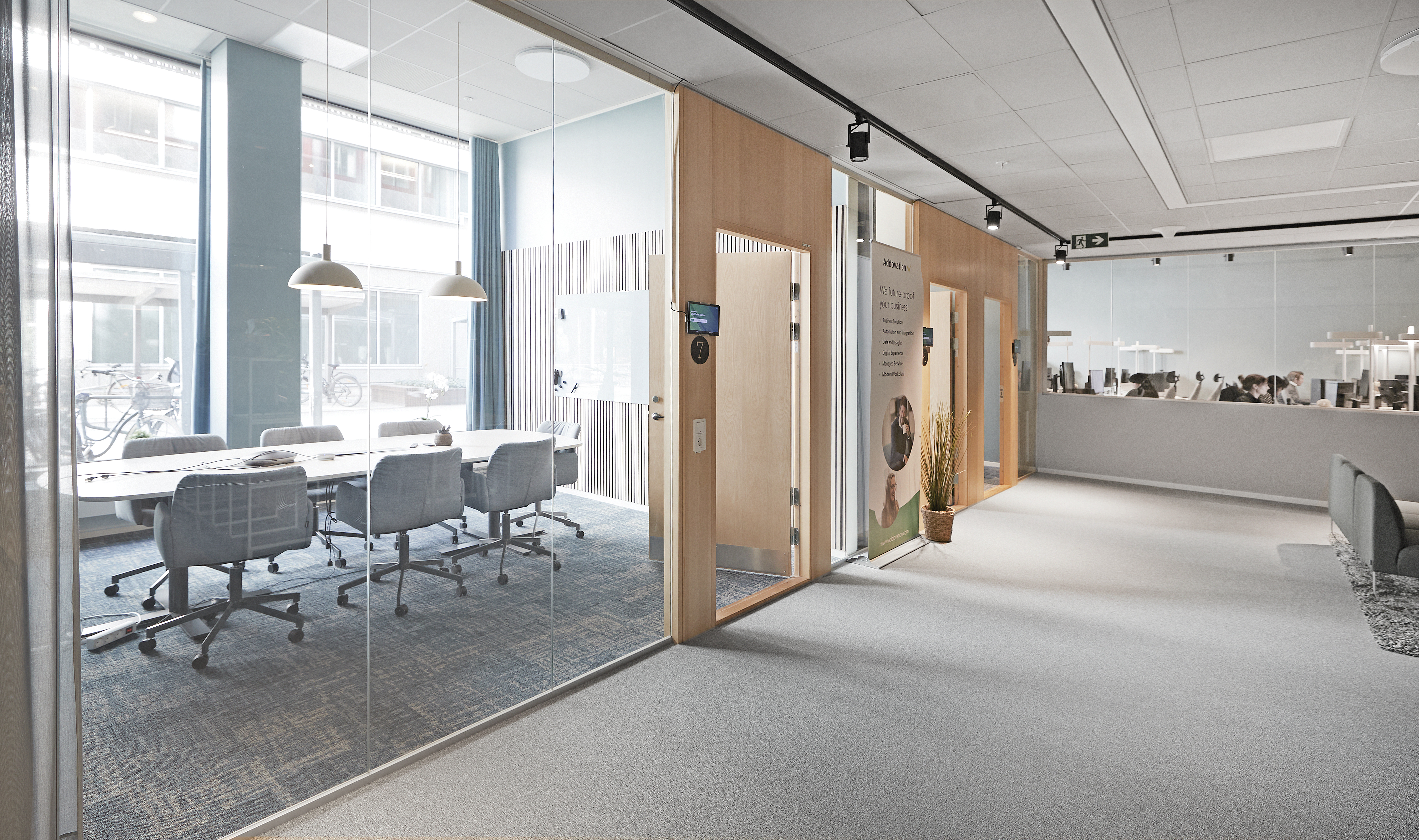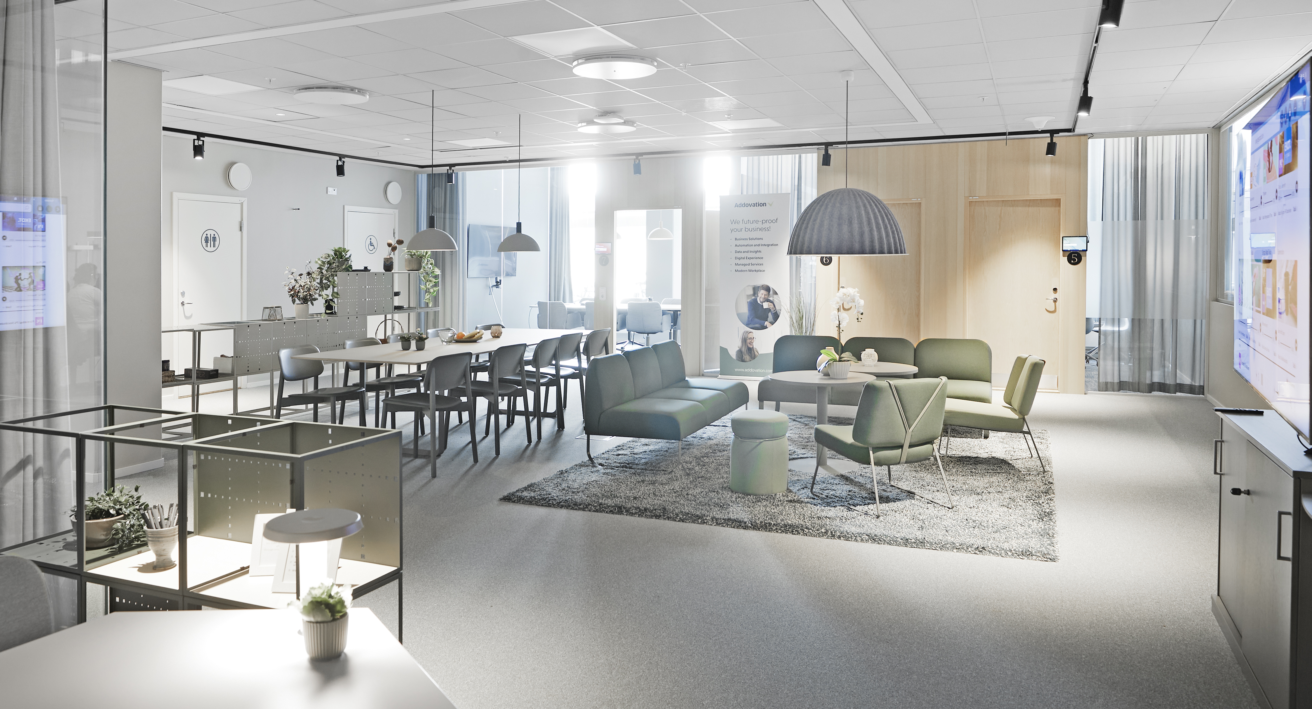 Här erbjuds en attraktiv lokal på fastighetens gatuplan med en mix av öppet landskap, fokus- och samtalsrum samt mötesrum i olika storlekar.