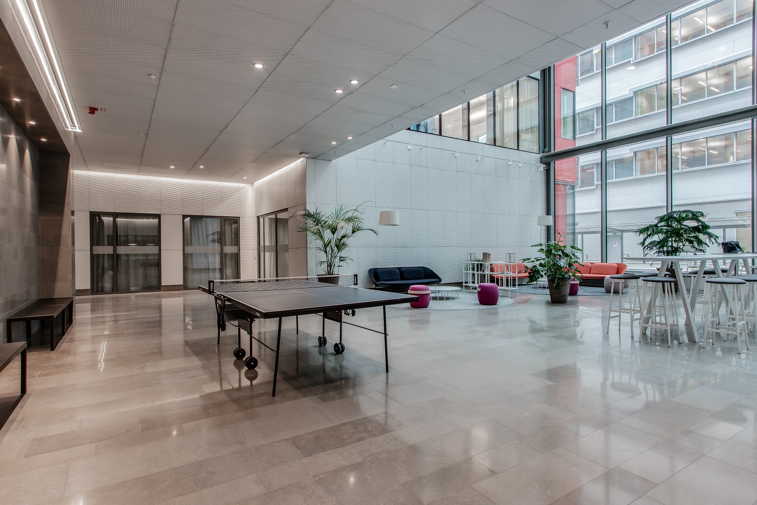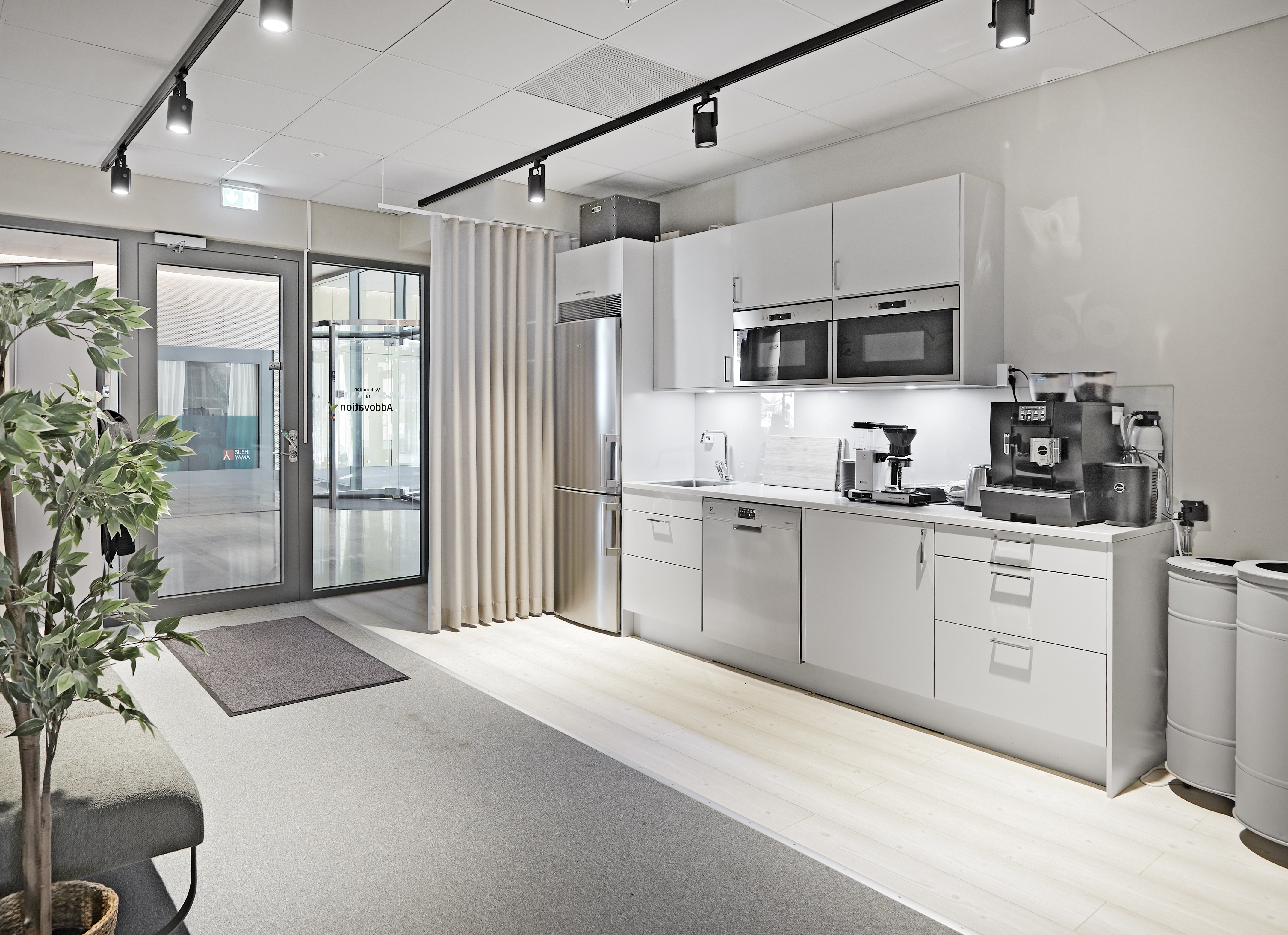 Välkomnande entré och loungeyta för t ex egen reception. Välplanerad kontorsyta met fin takhöjd med entré både från lobbyn och direkt från gatan.