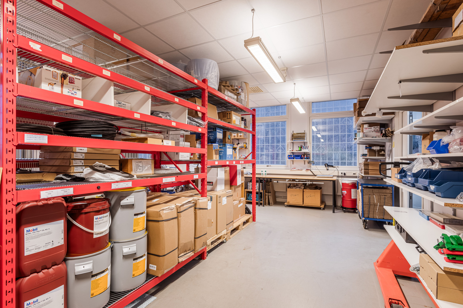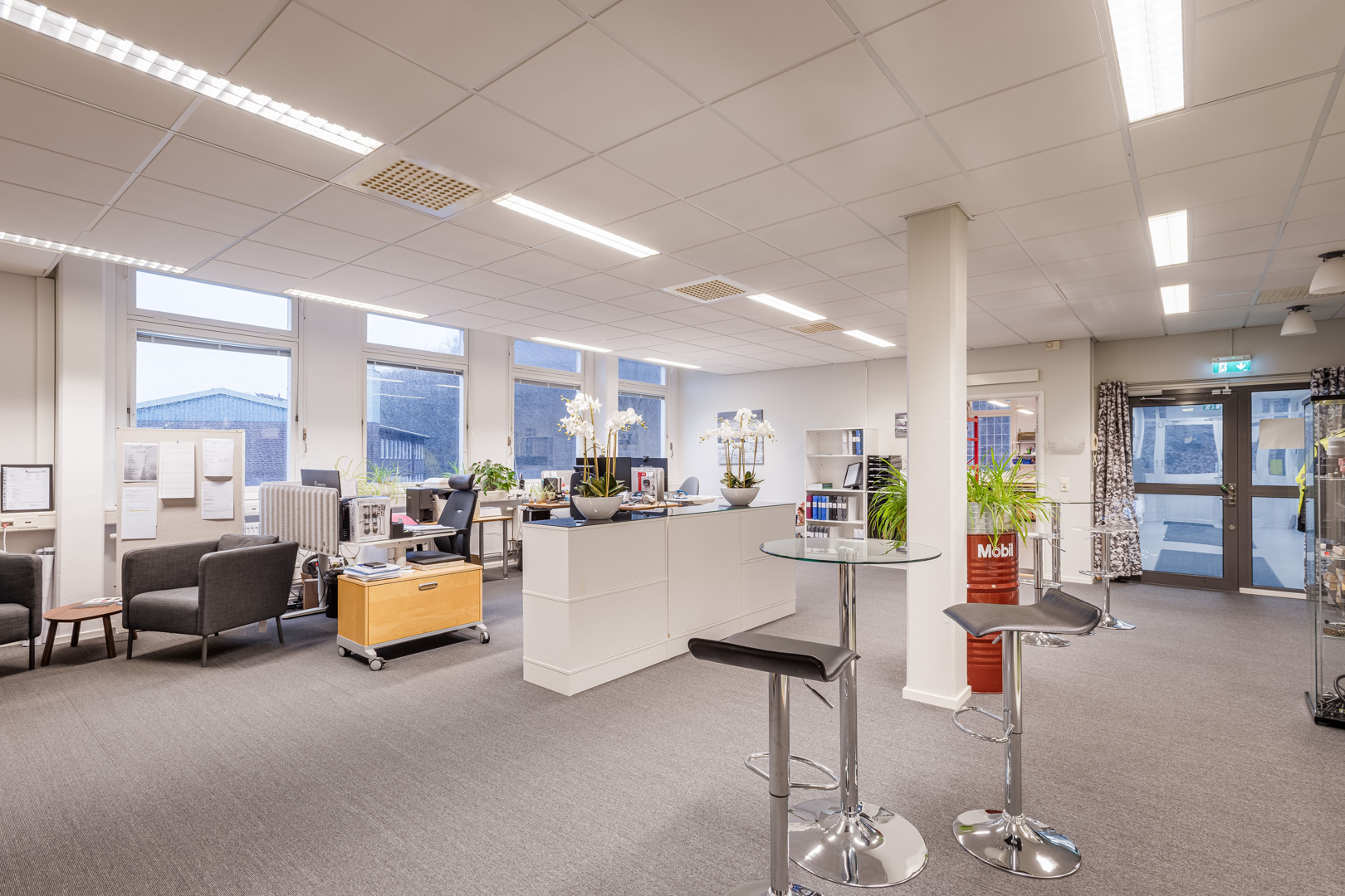 Öppen planlösning och kontorsrum samt mötesrum och lagerdel. Lyftbord finns för in- och utlastning samt gemensam lastbrygga.
