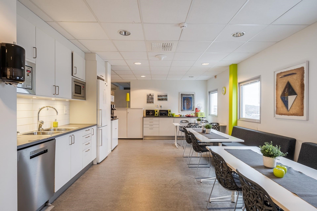 Lokalen är belägen högst upp i fastigheten med Kruthusets populära lunchrestaurang som enda granne på våningsplanet, en extra bekvämlighet för både medarbetare och besökare.