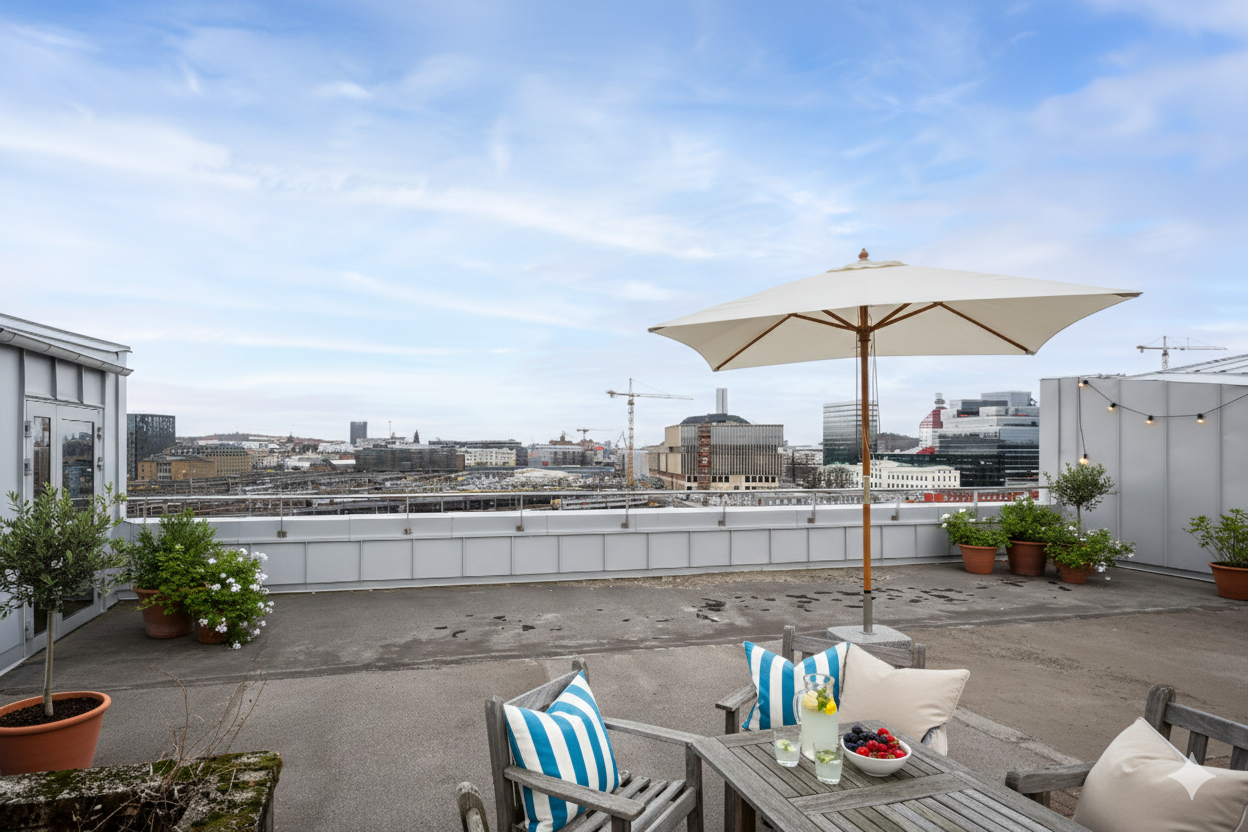 Nära Centralstationen. Tillgängliga p-platser och egen unik takterrass!