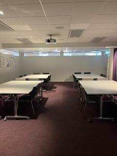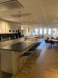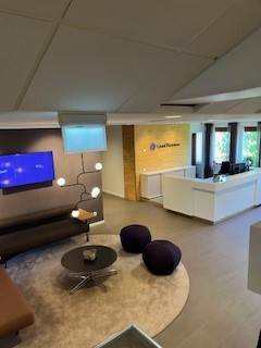 Denna rymliga kontorslokal är utformad för att möta behoven hos ett större företag och erbjuder en genomtänkt planlösning. Här finns flera kontorsrum för enskilt arbete, moderna mötesrum för effektiva samarbeten samt utbildningssalar för workshops och presentationer. Lokalen har dessutom en välkomnande receptionsdel, trevliga pentryn och en inbjudande lounge som skapar en trivsam arbetsmiljö för både medarbetare och besökare.