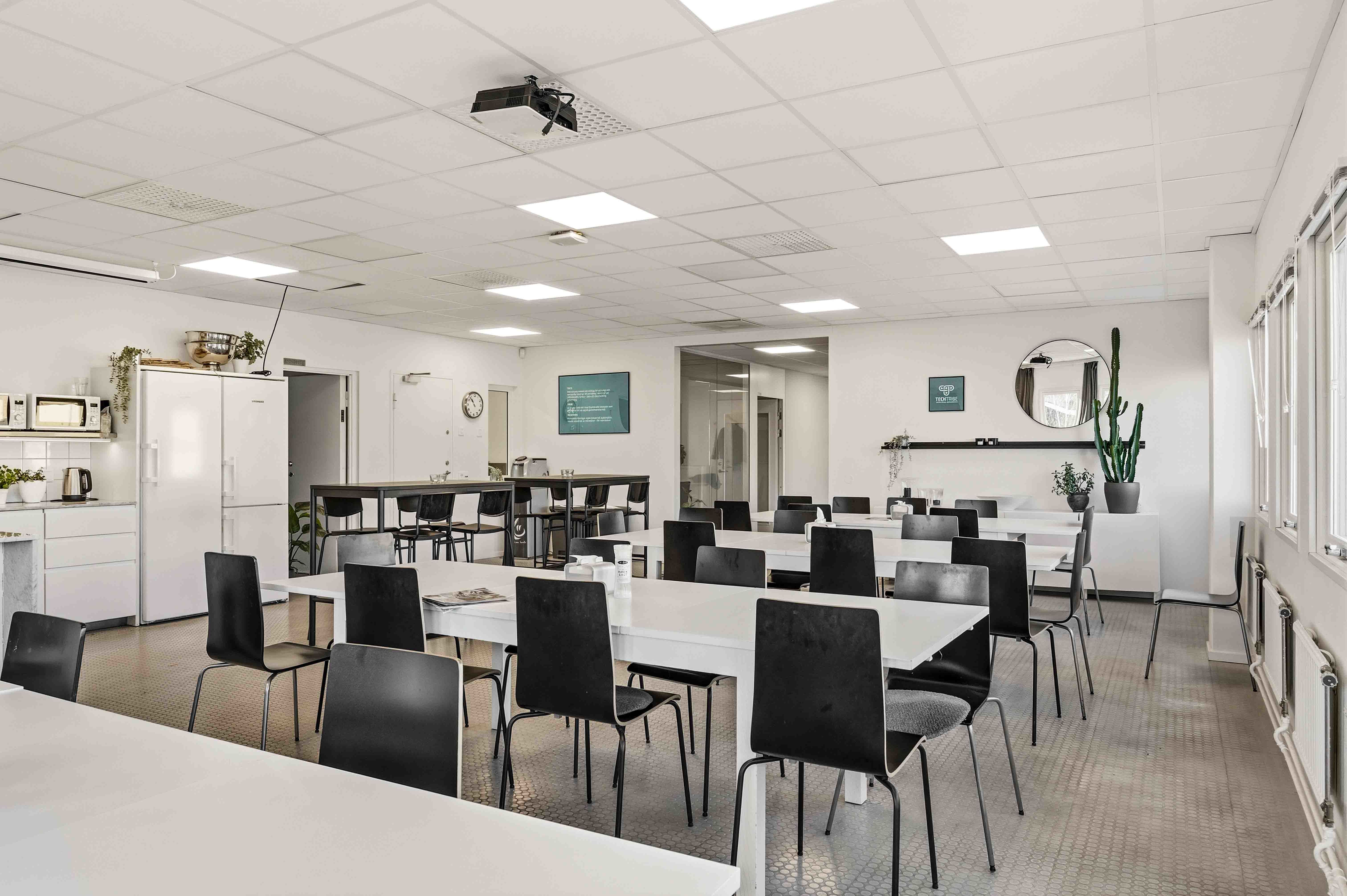 Kök och matsal delas med befintlig hyresgäst. Bra parkeringsmöjligheter.