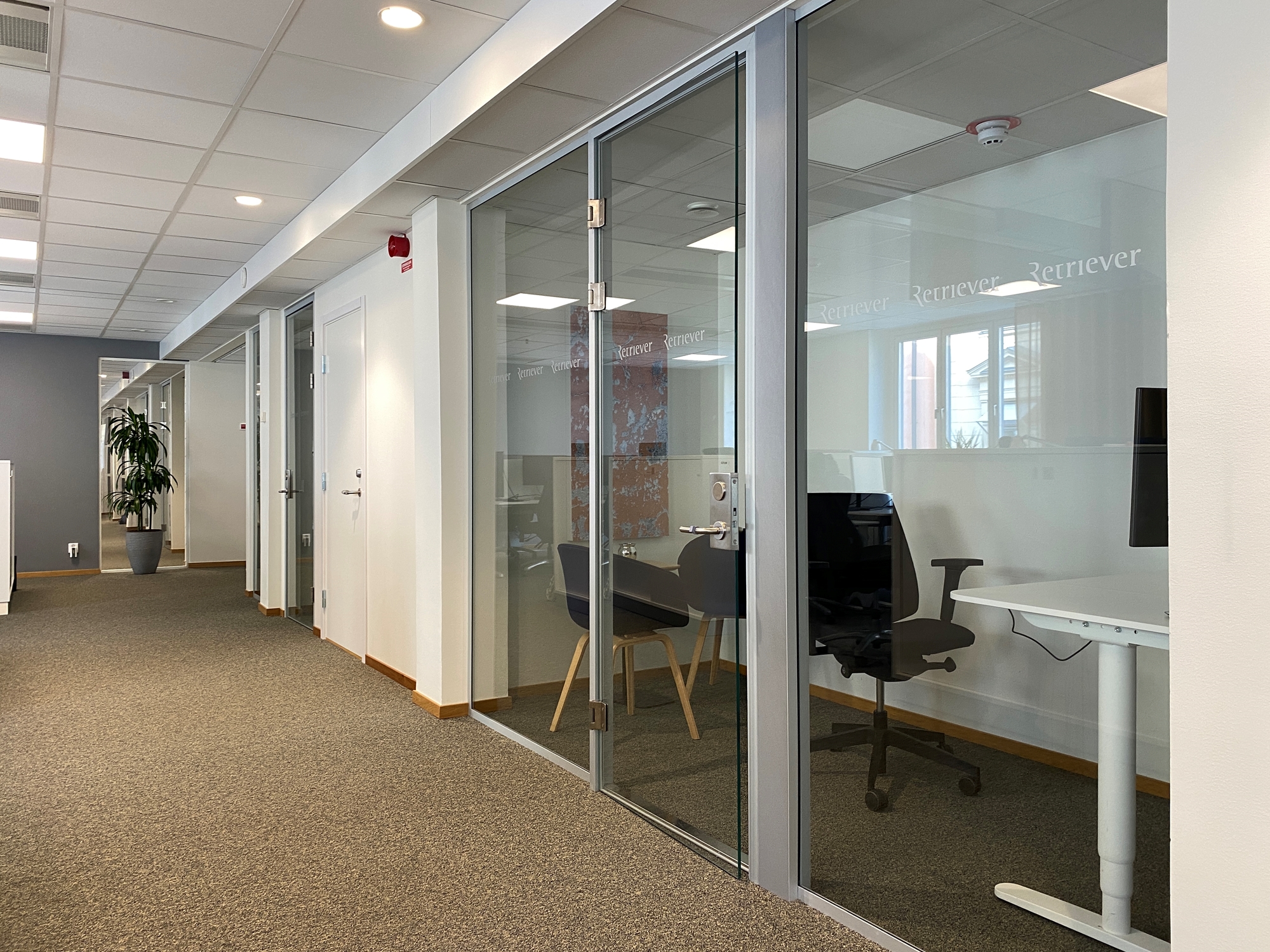 Effektiv planlösning med möjlighet till många arbetsplatser, möten och mötesplatser. En interntrappa kommer att byggas mellan våningsplanen.