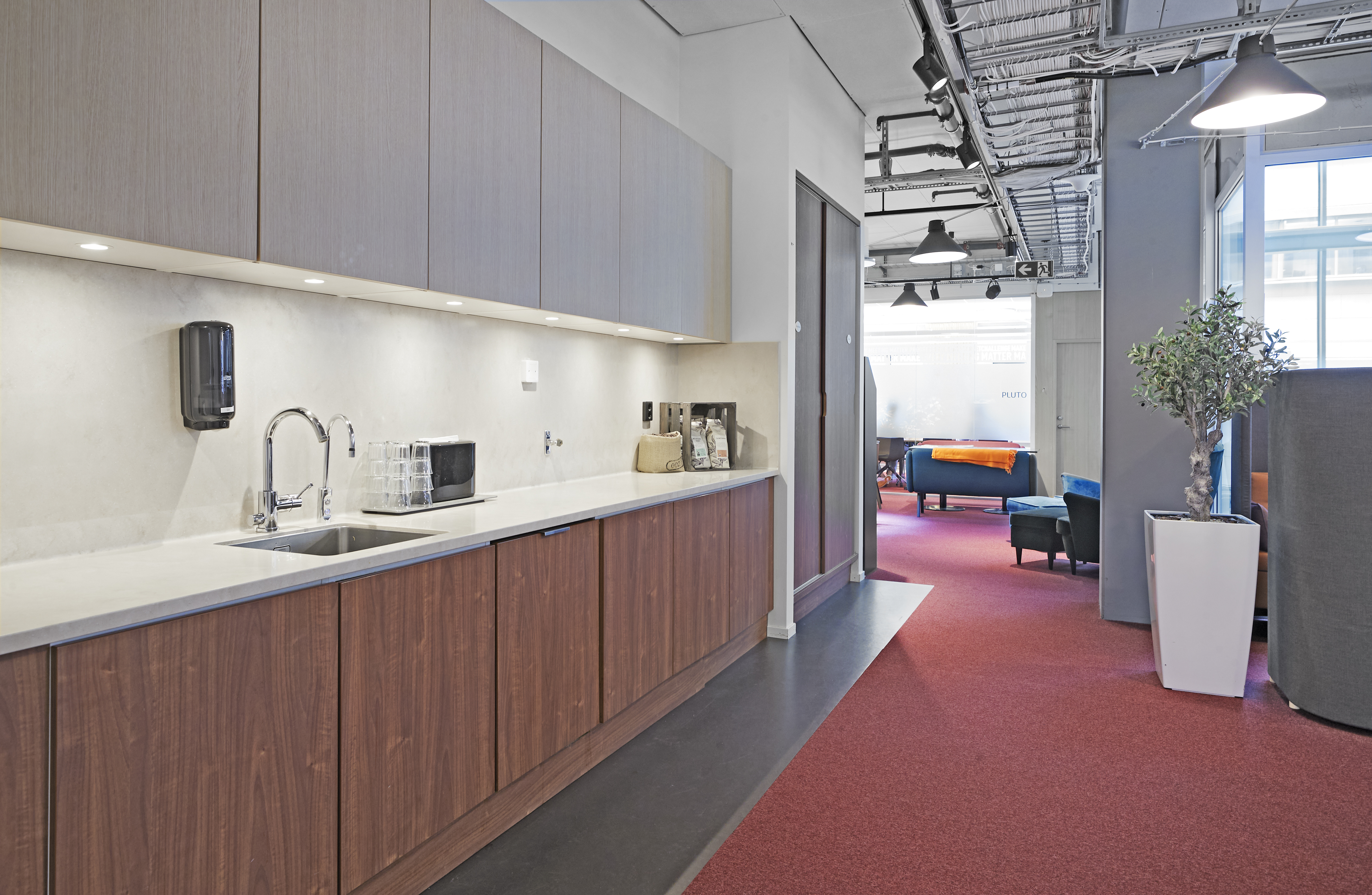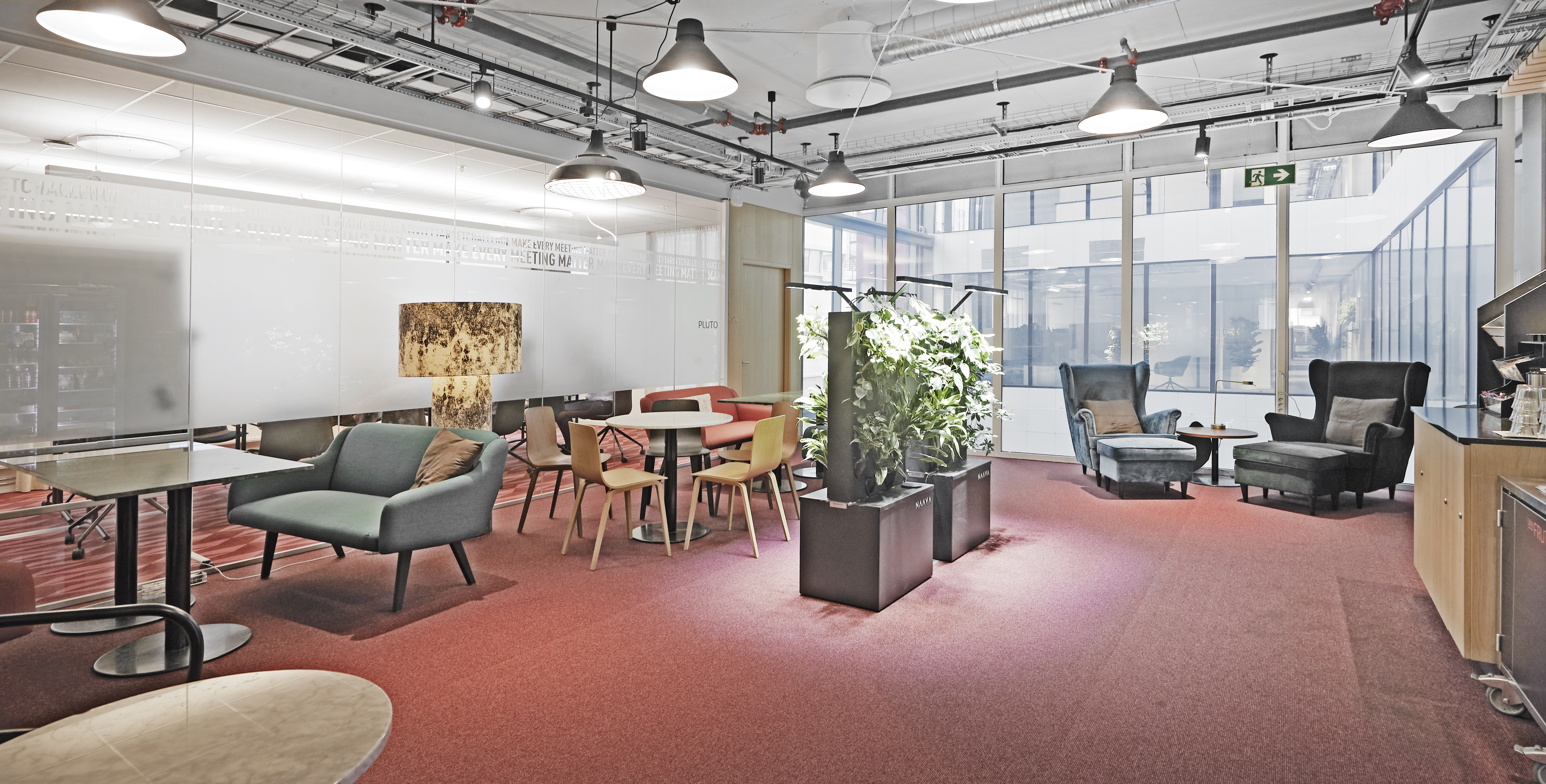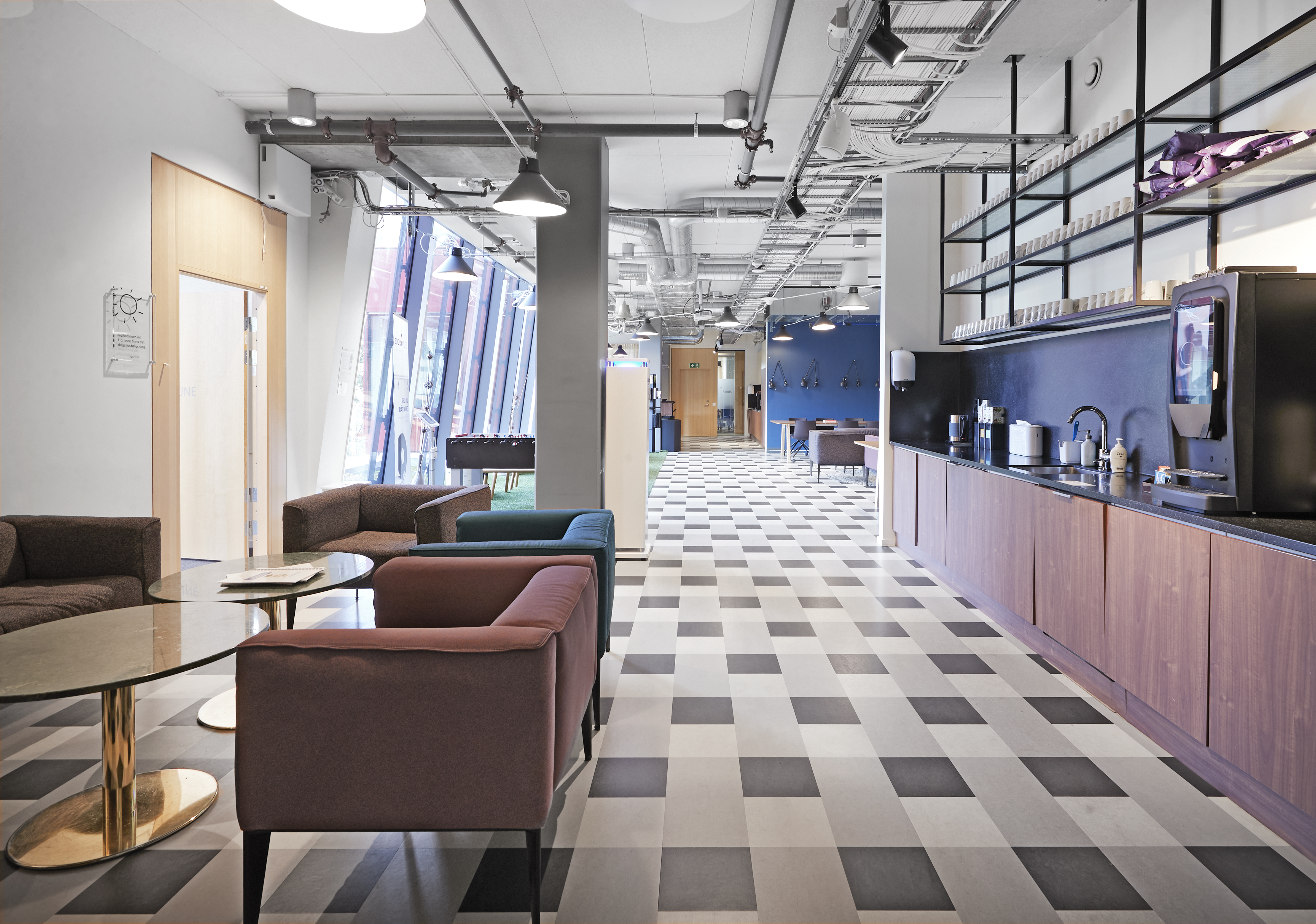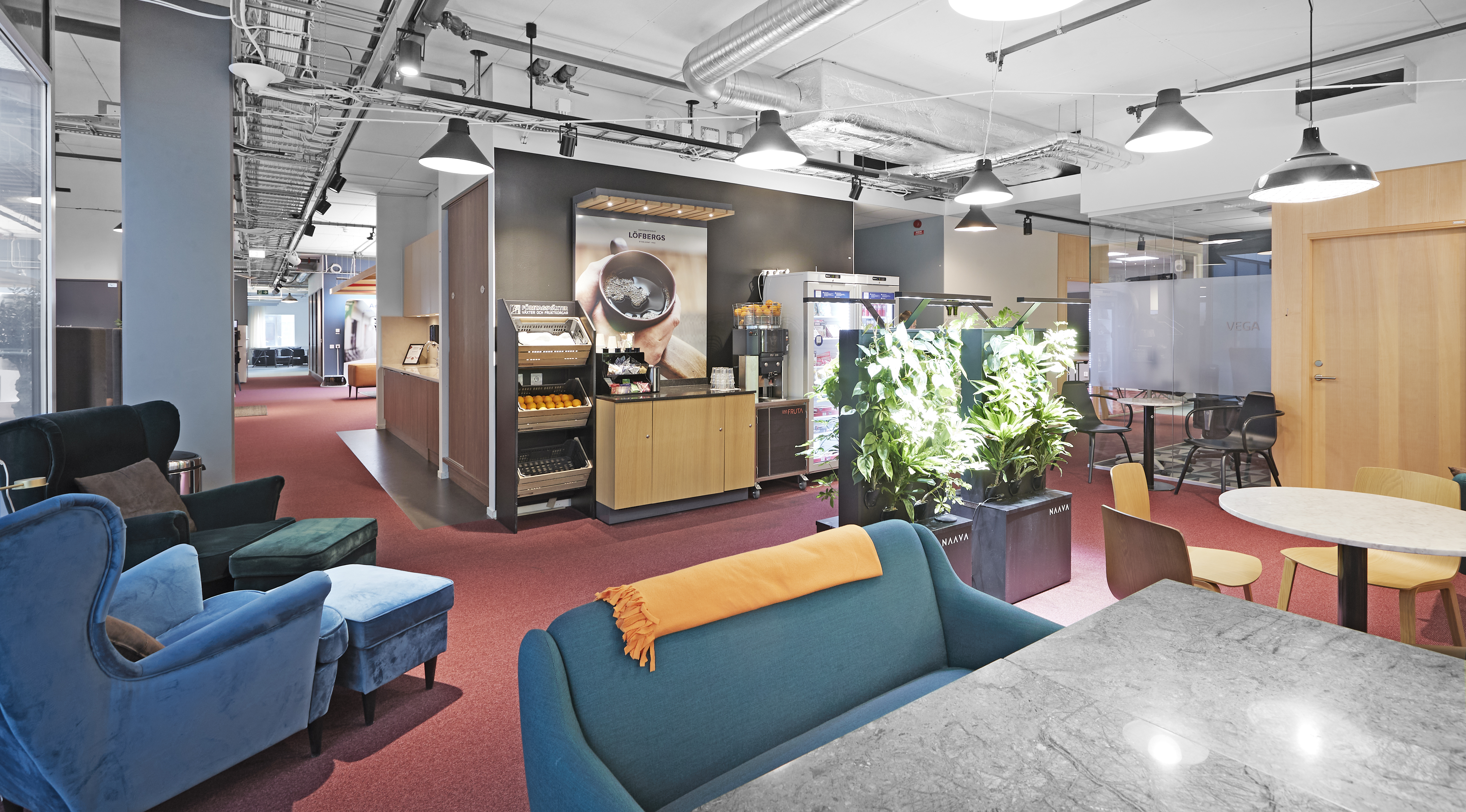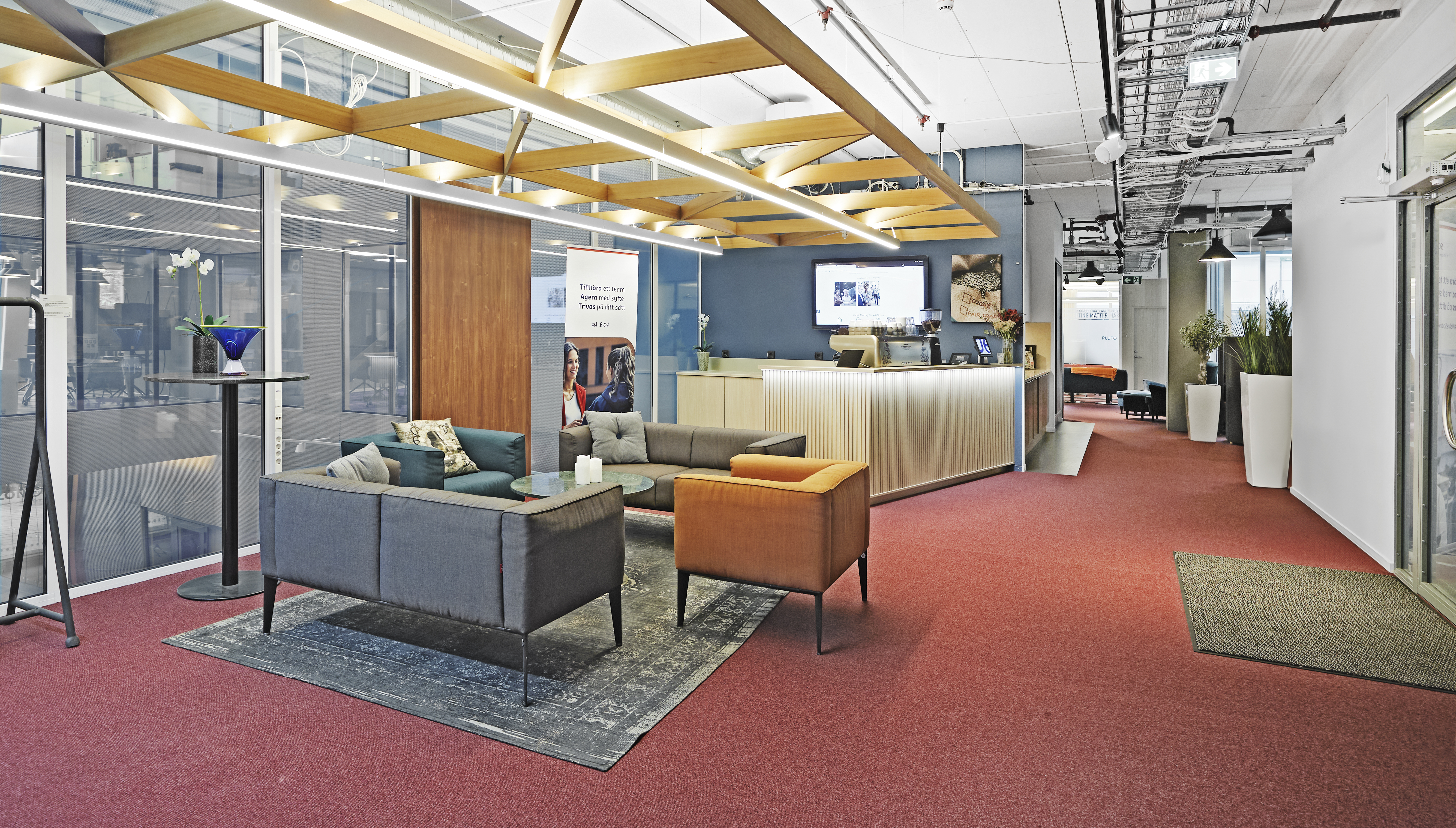 Lokalen är välplanerad och utformad med en reception, öppna kontorslandskap samt fler konferensrum och mötesrum i olika storlekar. Här finns pentry, flera kaffestationer, lounge och WC.
