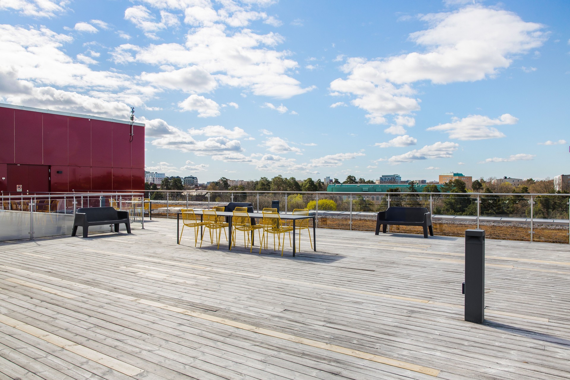Modern kontorsfastighet i attraktiva Arenastaden. Gemensam takterras för husets hyresgäster.