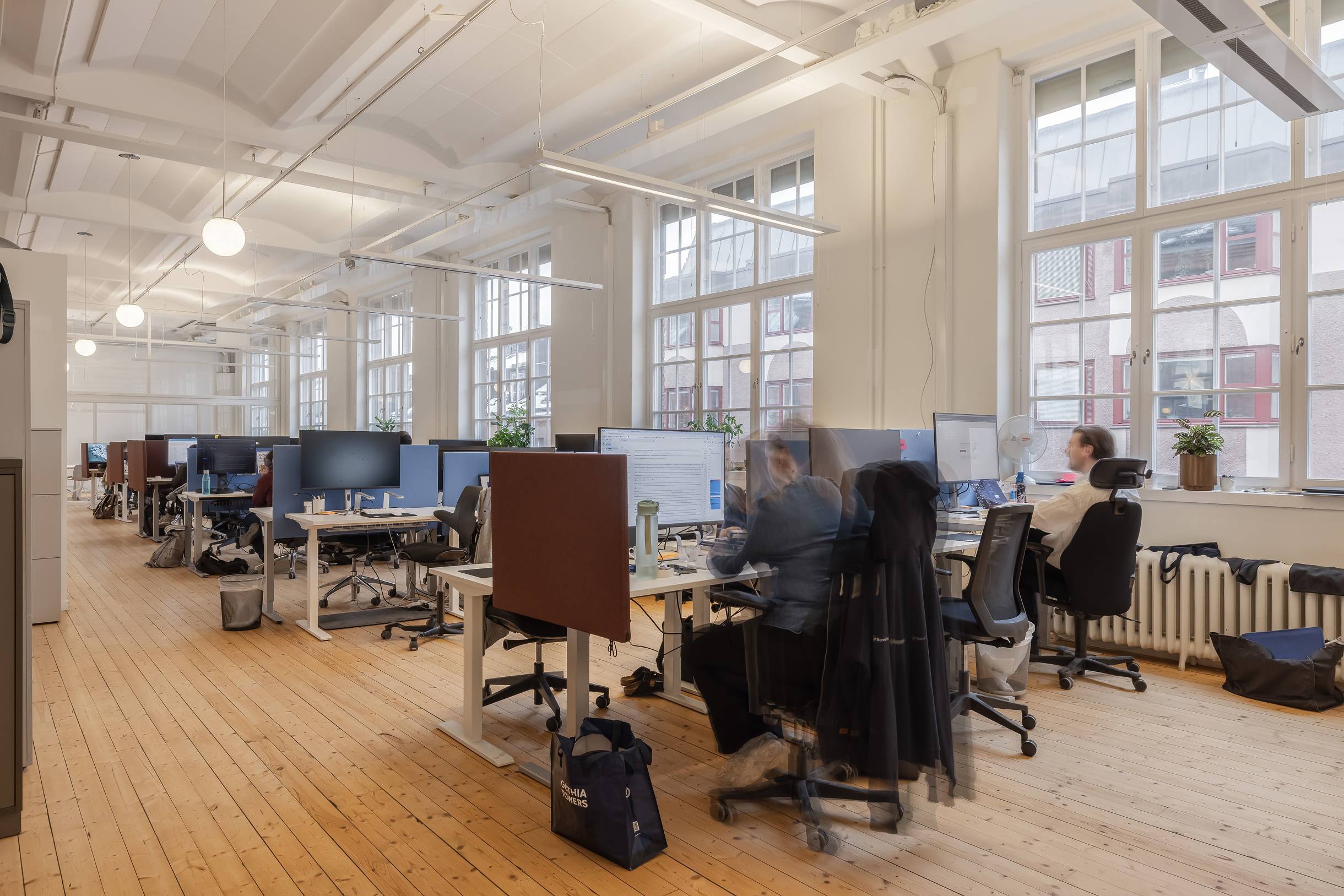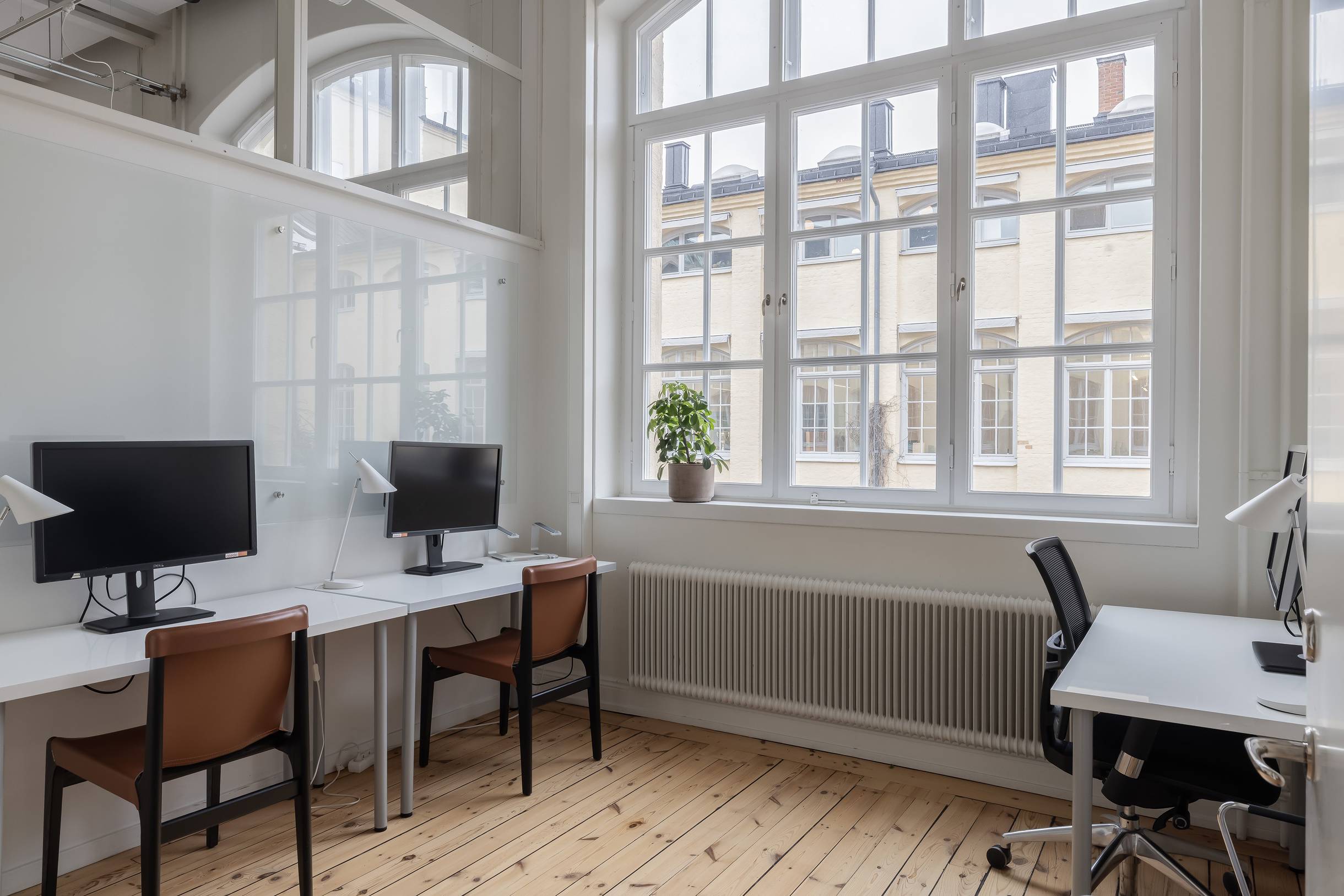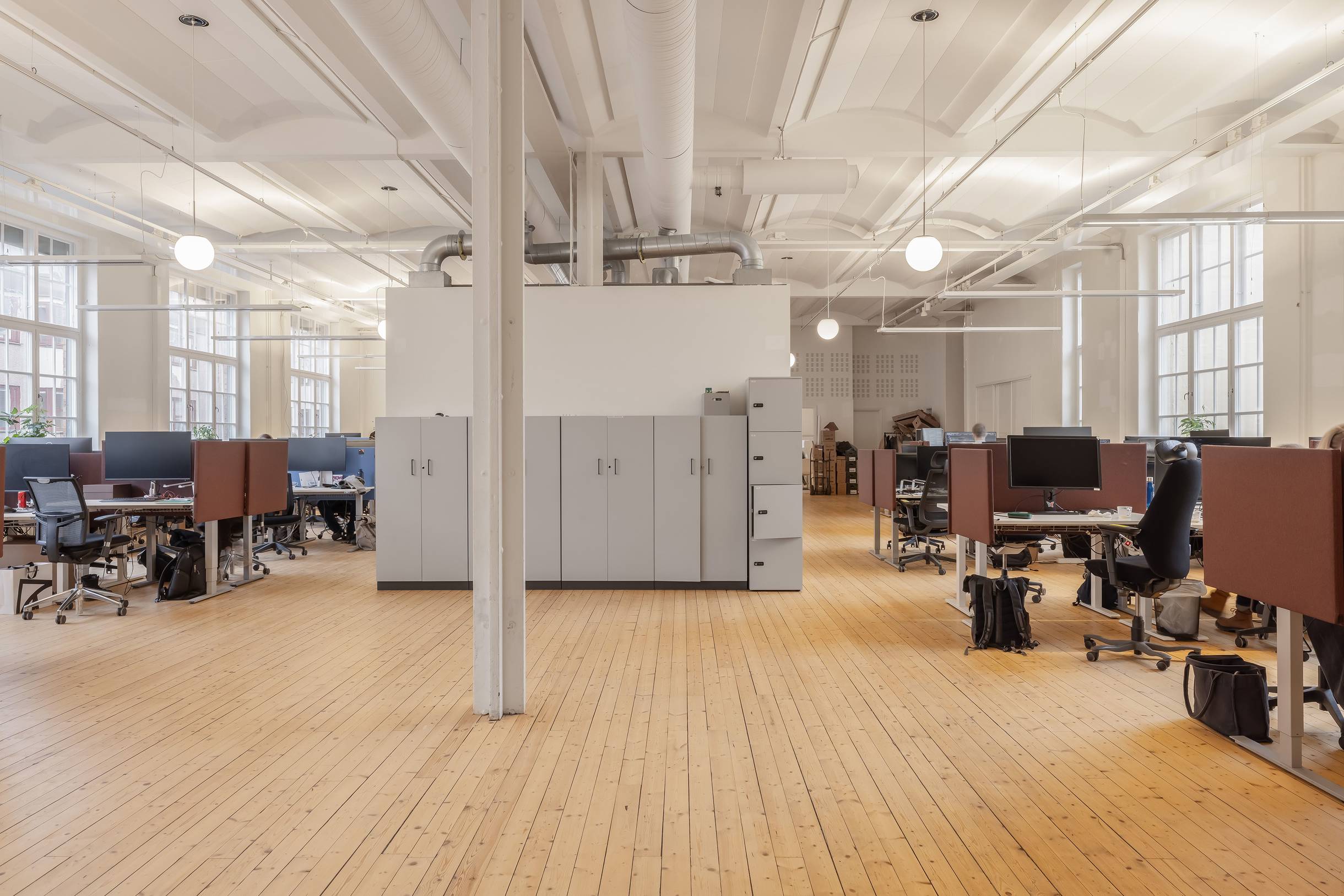 Lokalen erbjuder en inspirerande miljö med öppna landskap och mötesrum i varierande storlek. Utsikt mot både Sankt Eriksgatan och innergården.
