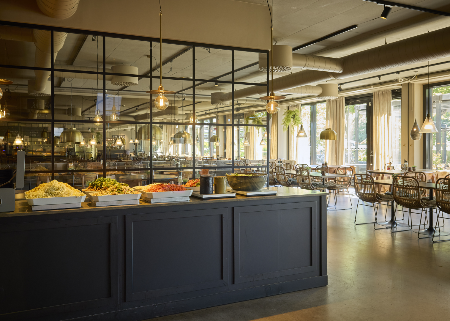 I direkt närhet finns ett brett utbud av restauranger som passar både affärsluncher och snabba pauser. Med SATS som granne har du tillgång till förstklassig träning precis intill kontoret – perfekt för att hålla energin uppe.