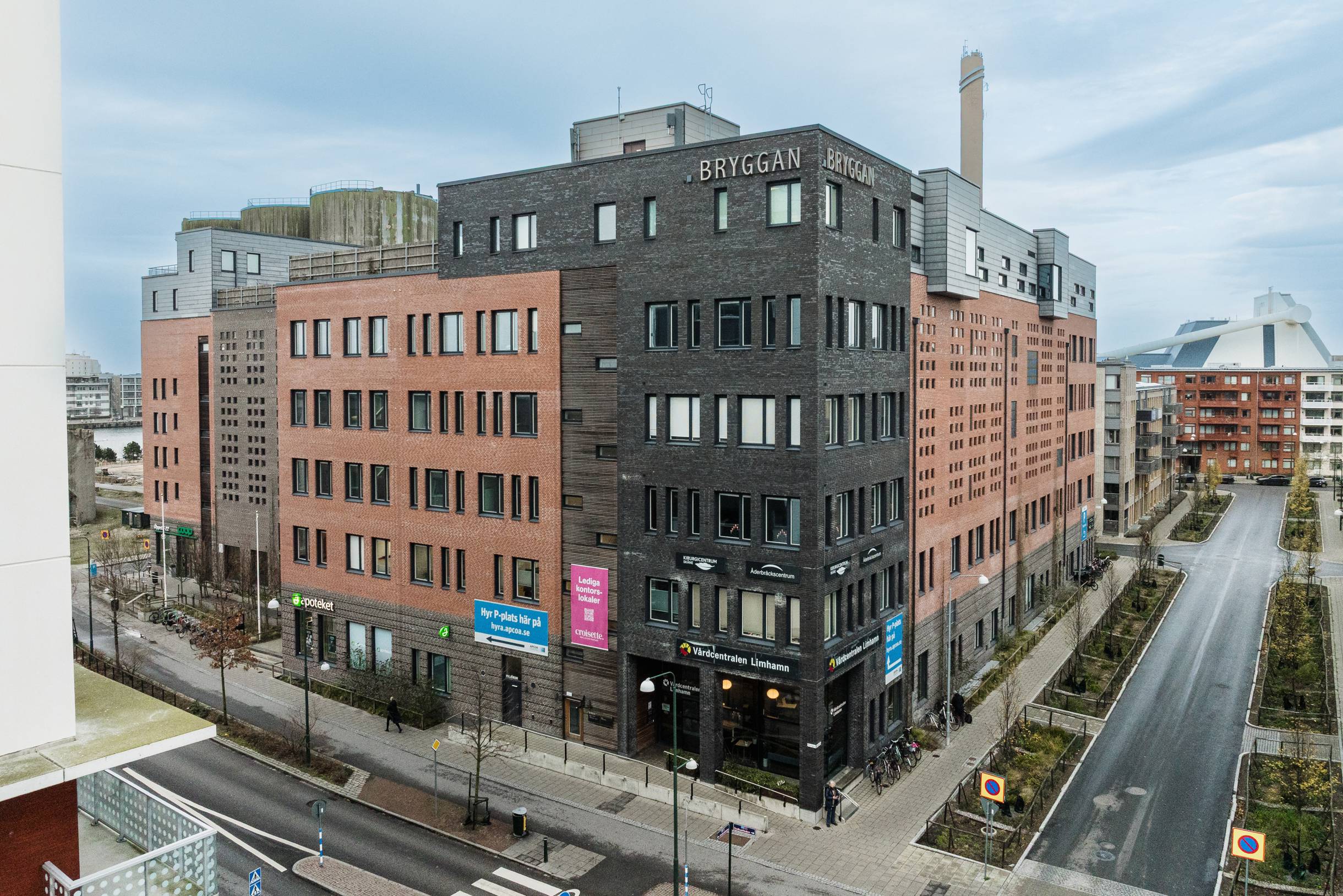 Omgivningen gör arbetsdagen enkel och njutbar – promenadvänliga kajstråk, restauranger som Mastio och etablerade aktörer som Coop, Apoteket och Region Skåne finns i närheten.
