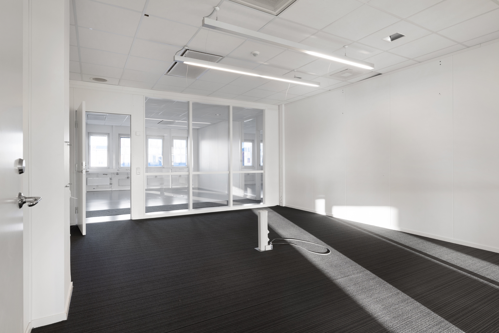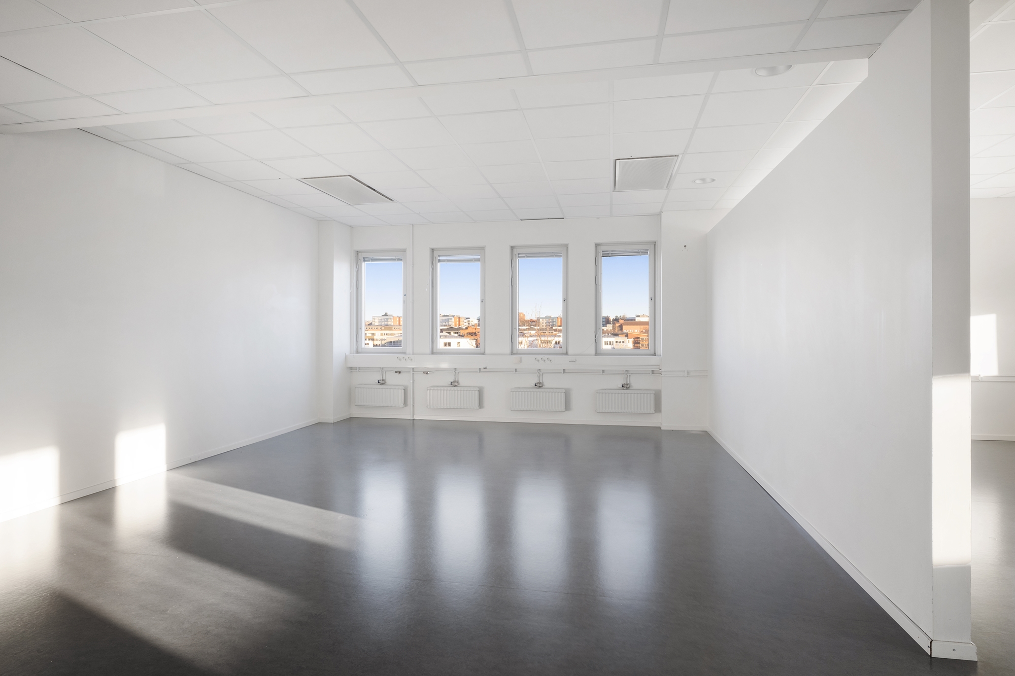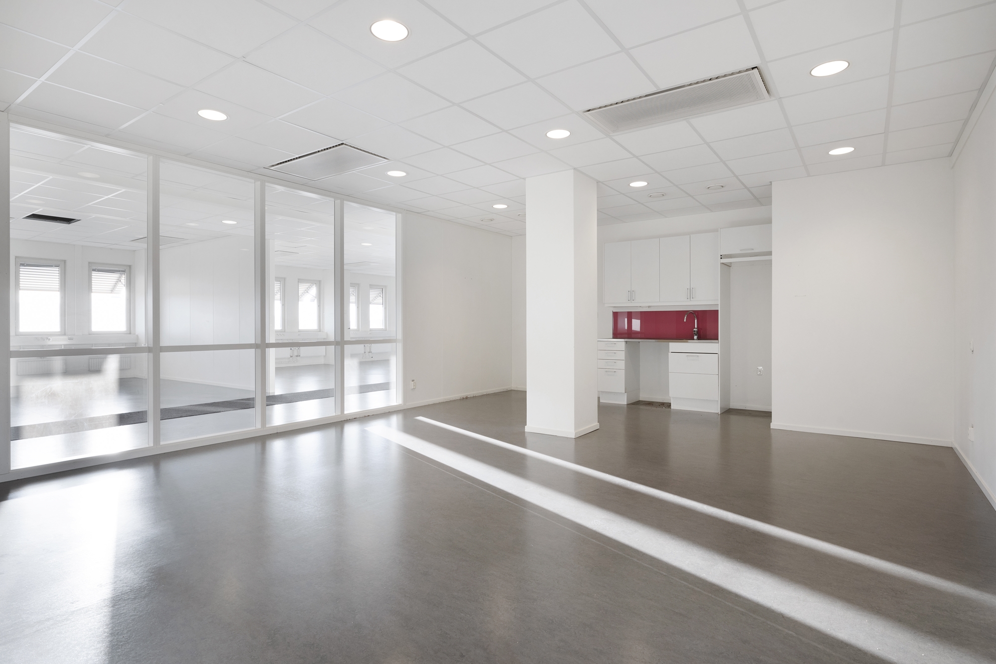 Denna moderna kontorslokal erbjuder inte bara ett optimalt läge utan också ett exceptionellt ljusinsläpp som skapar en ljus och inspirerande arbetsmiljö.
