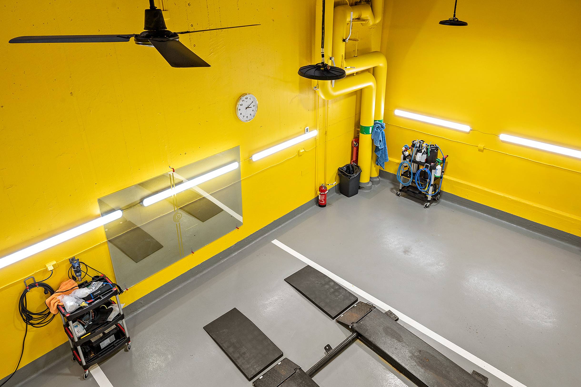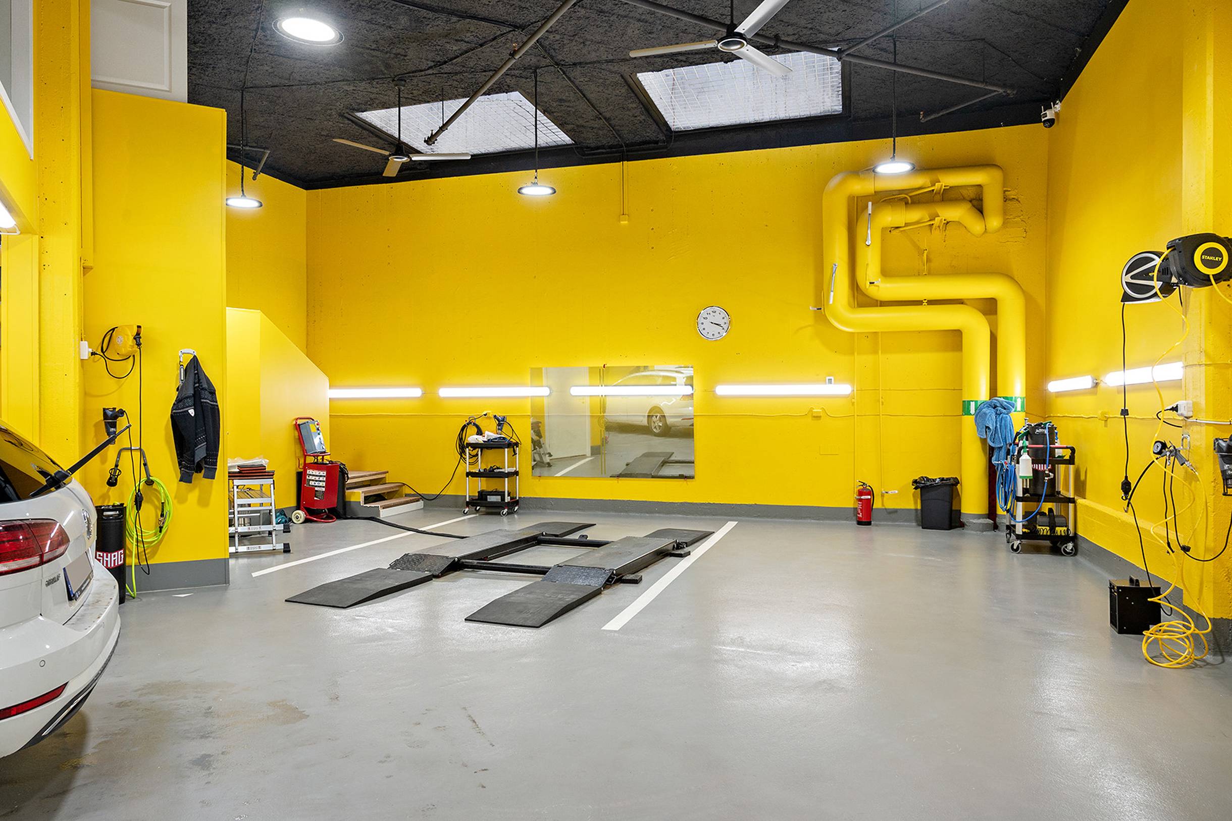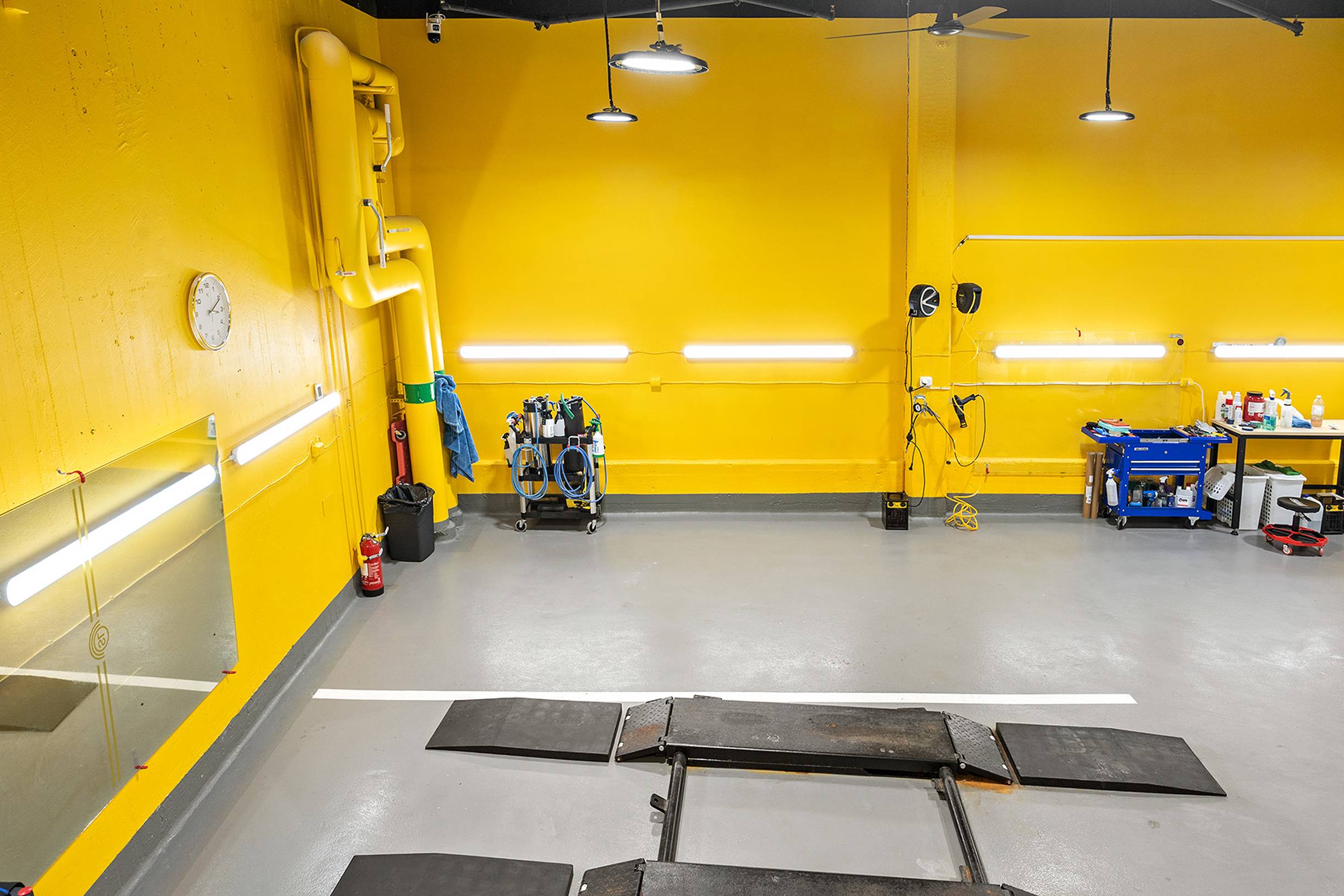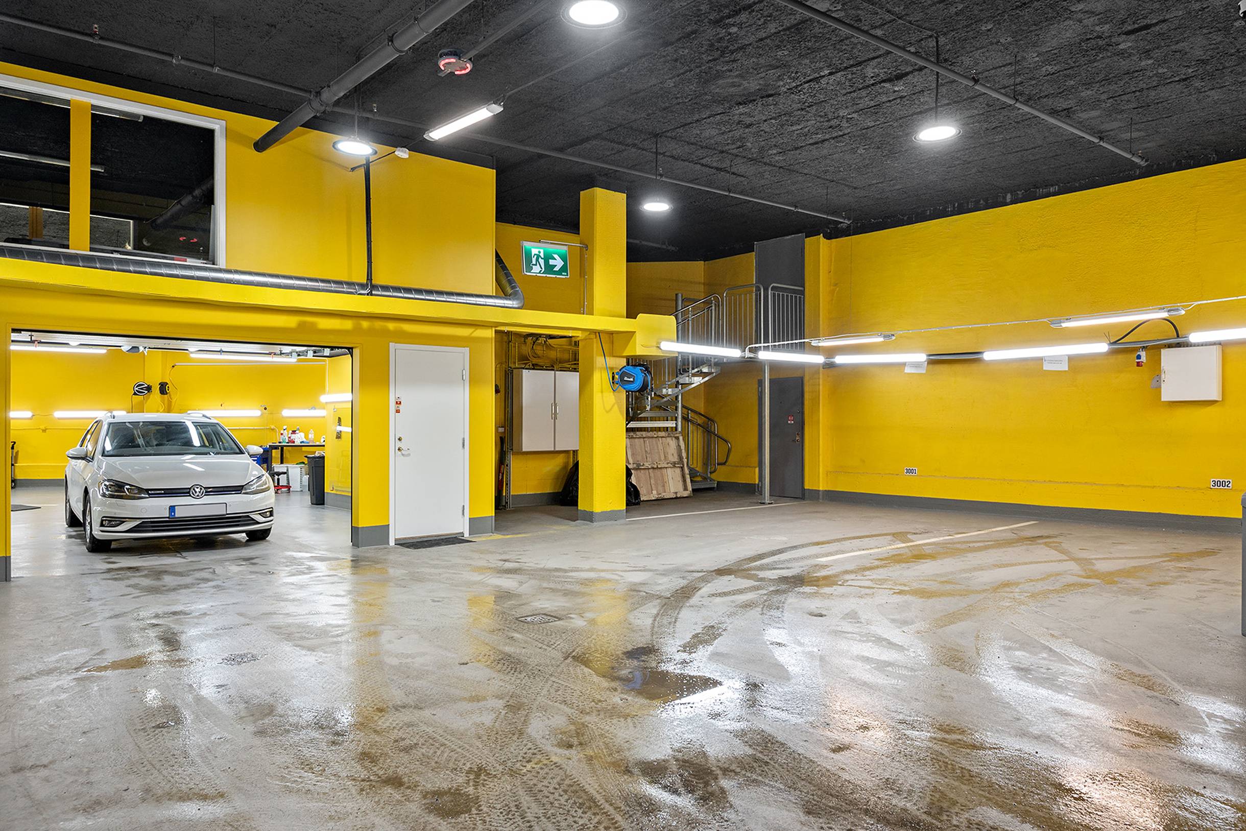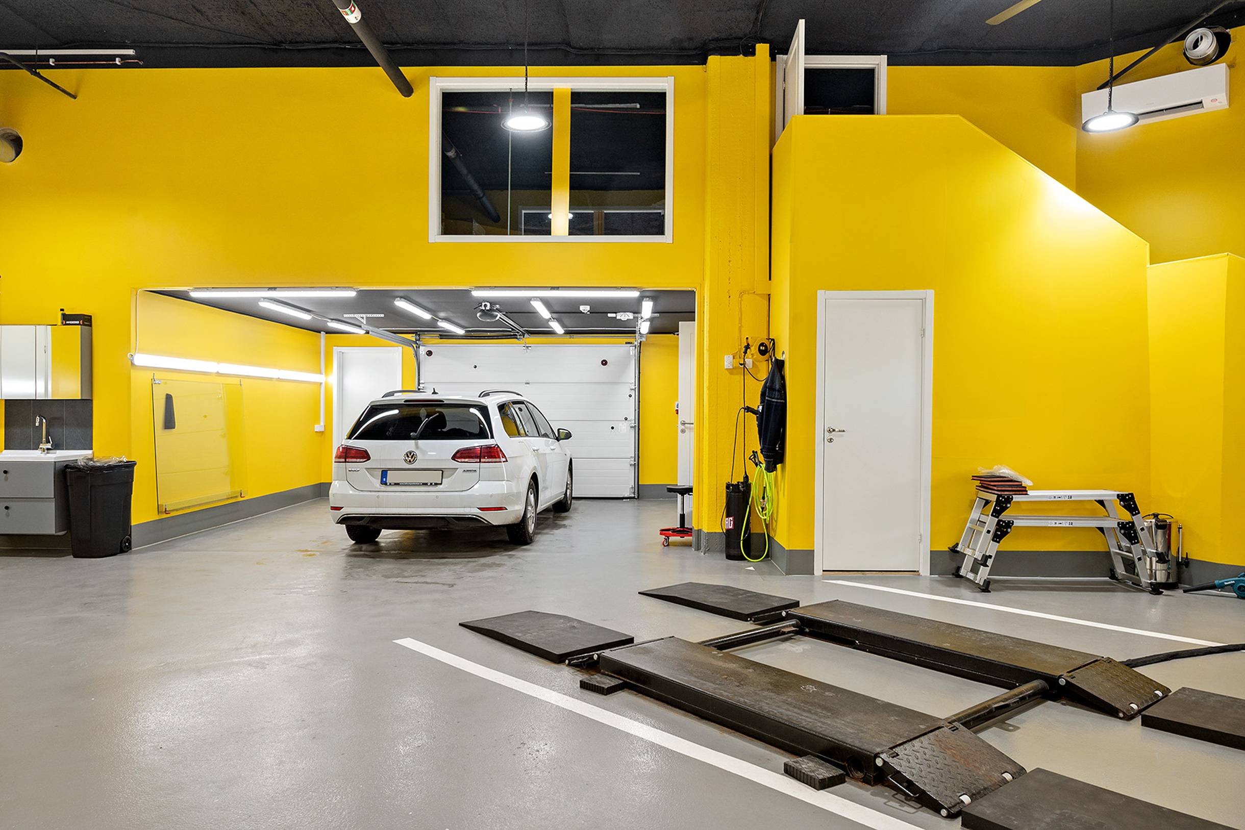 I anslutning till lokalen finns tvättplatser som får nyttjas av hyresgästerna i garaget. Här finns även andra verksamheter som jobbar med foliering och tvätt.