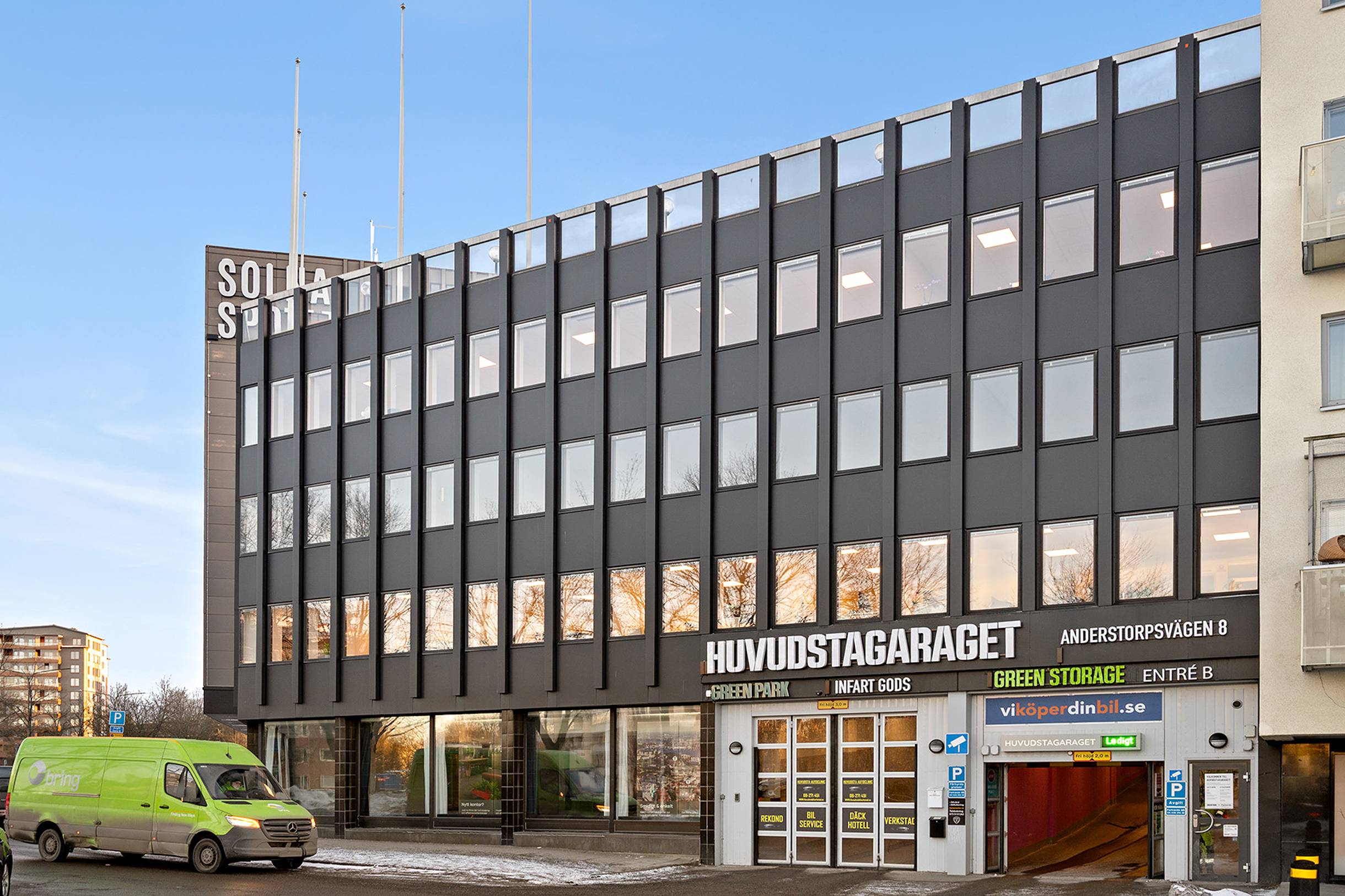 I samma fastighet som garaget finns många kontor men även Mekonomens butik samt pizzeria bland annat.