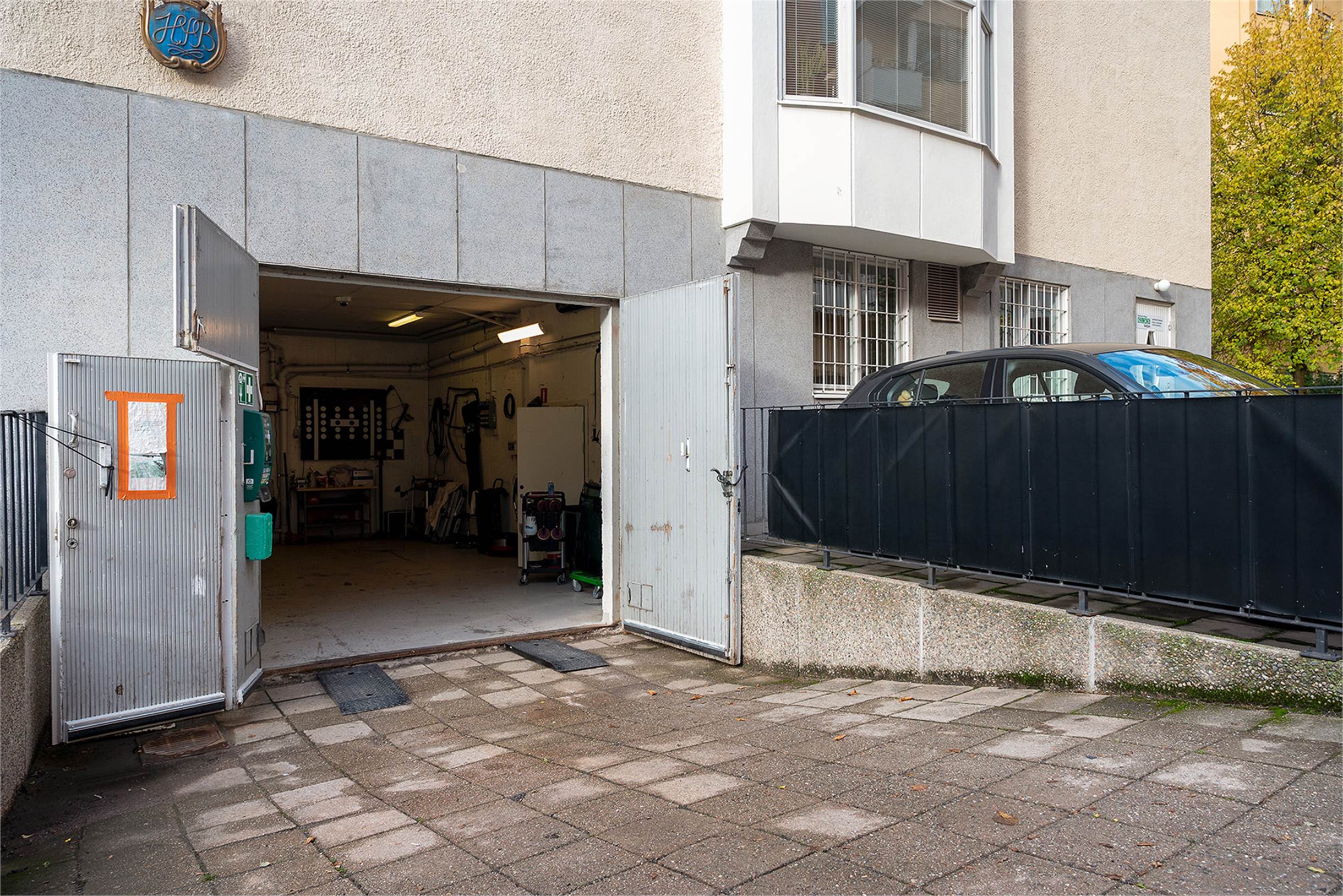 Parkering för 1-2 bilar i verkstaden samt en plats framför porten.