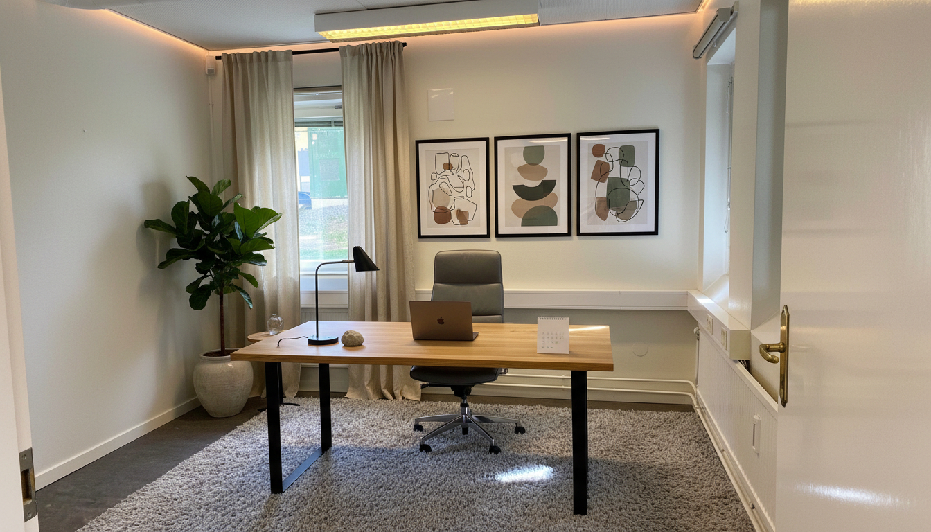Lokalen består av tre rum i fil med ett praktiskt pentry längst in. Generöst ljusinsläpp och lugn gårdsmiljö skapar en inspirerande arbetsplats med god koncentration. Entré i markplan ger enkel tillgänglighet för både personal och besökare.