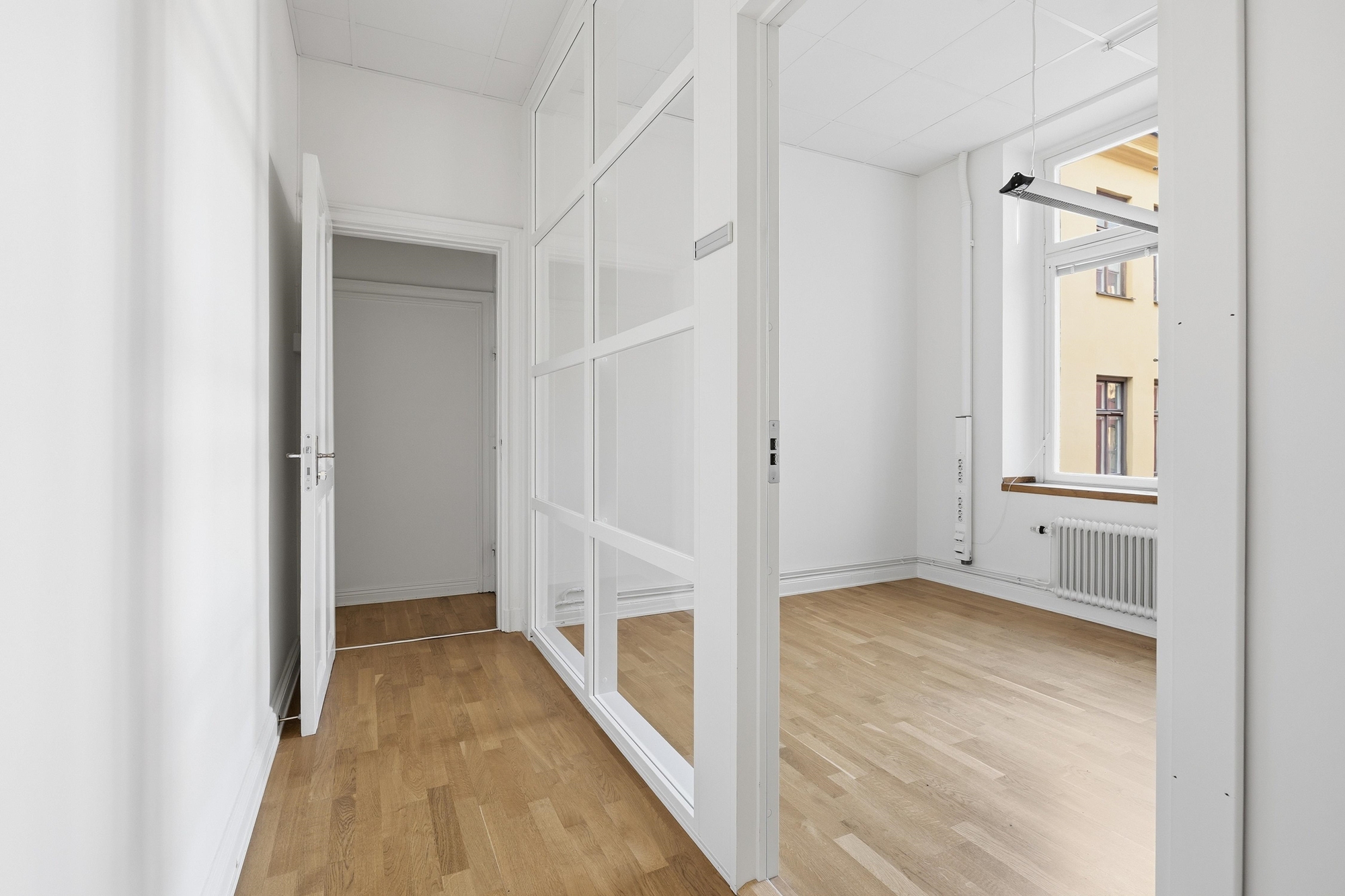 Här erbjuds en mycket trivsam lokal med stora möjligheter att anpassas efter just era behov och önskemål. I dagsläget är lokalen något rumsindelad, vilket skapar en bra struktur för exempelvis mötesrum, samtalsrum eller separata arbetsytor. Samtidigt består delar av planlösningen av lättväggar, vilket innebär att det finns goda möjligheter att öppna upp lokalen för att skapa större, mer sammanhängande ytor om så önskas.