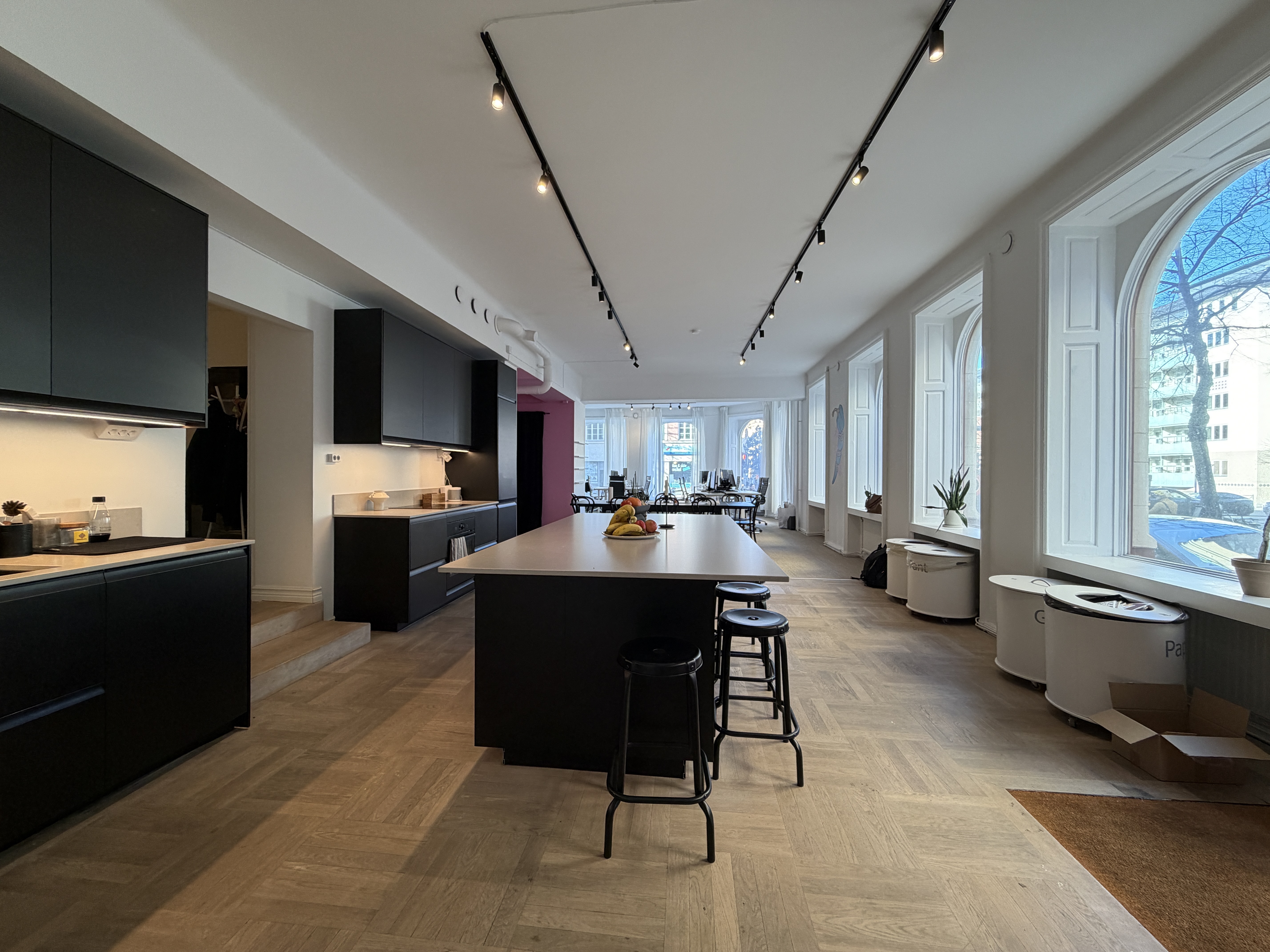 Lokalen har högt i tak, generöst ljusinsläpp och en flexibel planlösning. Två entréer möjliggör effektiv användning och anpassning efter verksamhetens behov.