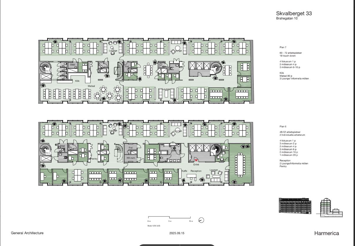 Lokalen är fördelad på två plan, plan 6 & 7 som förbinds med interntrappa. Lokalen anpassas i samråd med tillträdande hyresgäst.