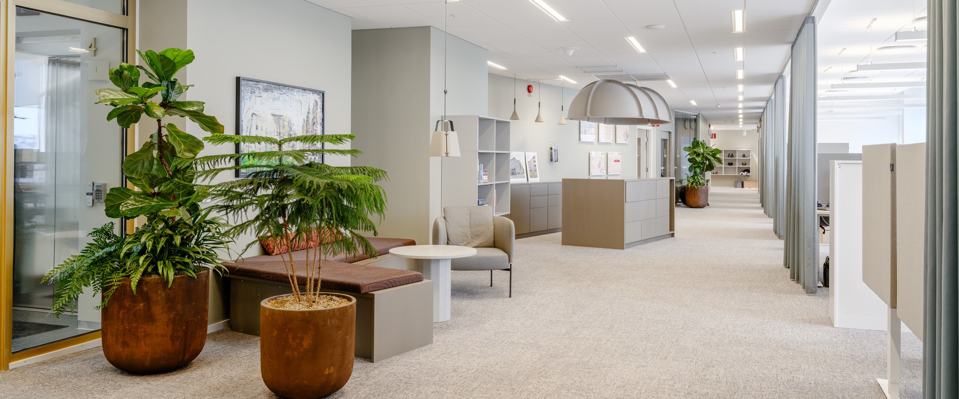 Ta hissen upp till våning 5 och kliv in i den trevliga entrén som öppnas upp i ett luftigt kontorslandskap med loungeyta och några enskilda kontorsrum för...