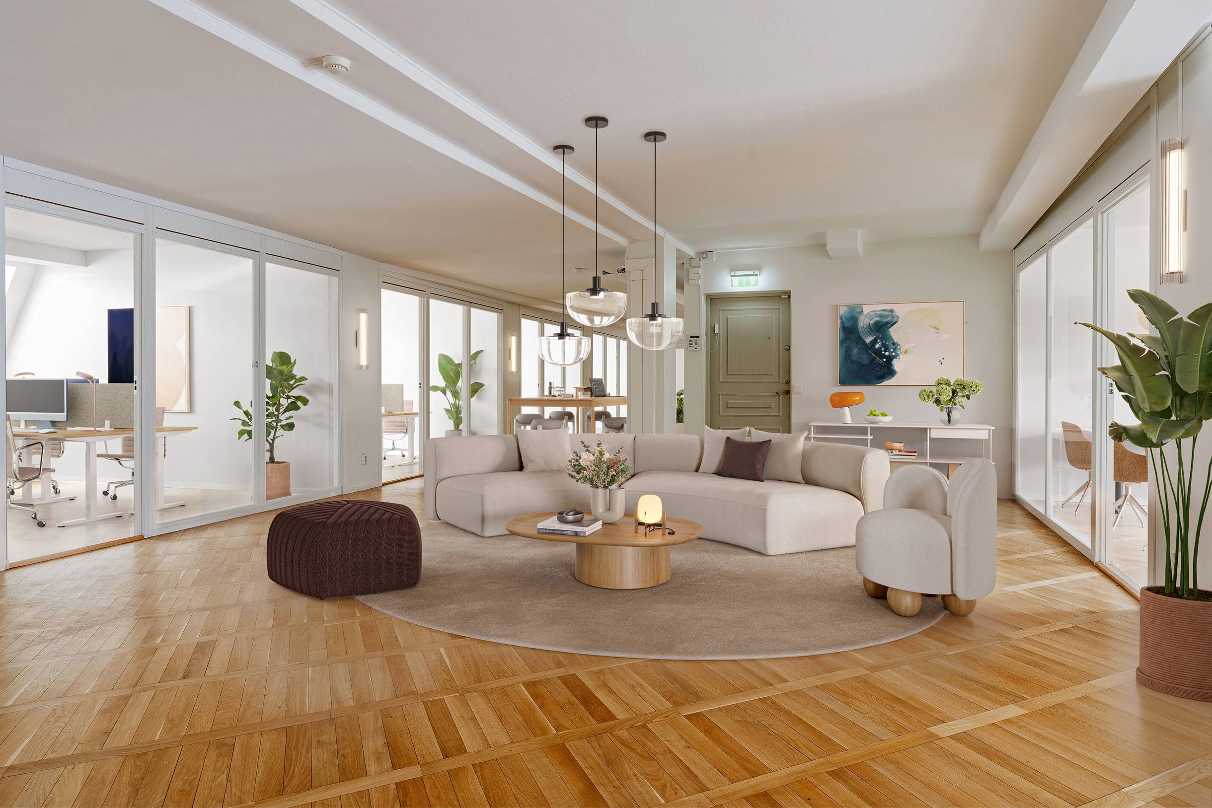 Välkomna till Brunnsgränd 4 och denna ljusa och charmiga lokal högt upp i huset om 530 kvm. Lokalen är idag rumsindelad med fönster i alla rum som låter ljuset flöda in men kan lätt öppnas upp till en mer öppen planlösning. Eller varför inte skapa en extern och intern del med perfekt fördelning av mötes-och samtalsrum. Lokalen har karaktär med fint trägolv, snedtak och fönstersmygar.