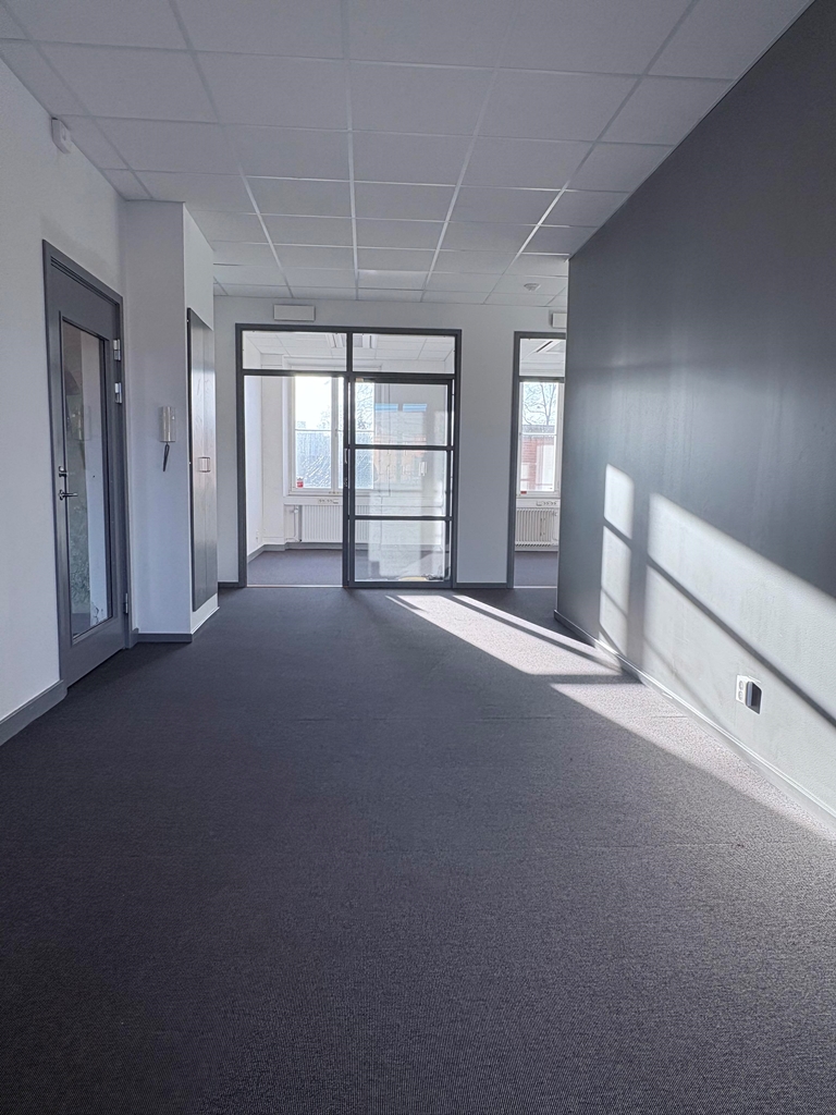 Lokalen har dessutom två separata entréer, vilket ger goda möjligheter till separata flöden för personal och besökare eller för att dela upp verksamheten i olika delar.