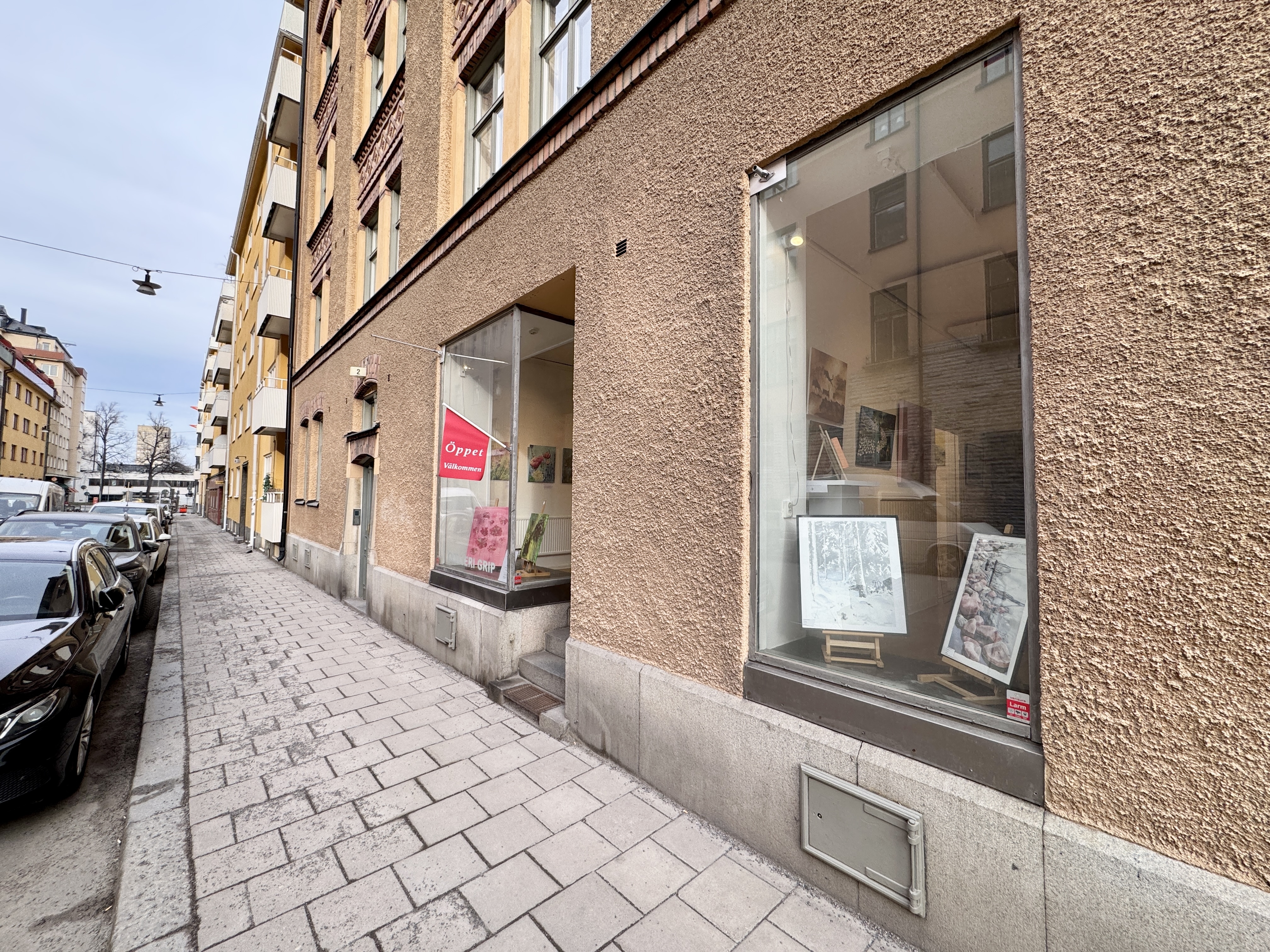 Lokalen har stora skyltfönster som ger ett fint ljusinsläpp och mycket bra exponering mot gatan – idealiskt för butik, showroom eller kontorsverksamhet.