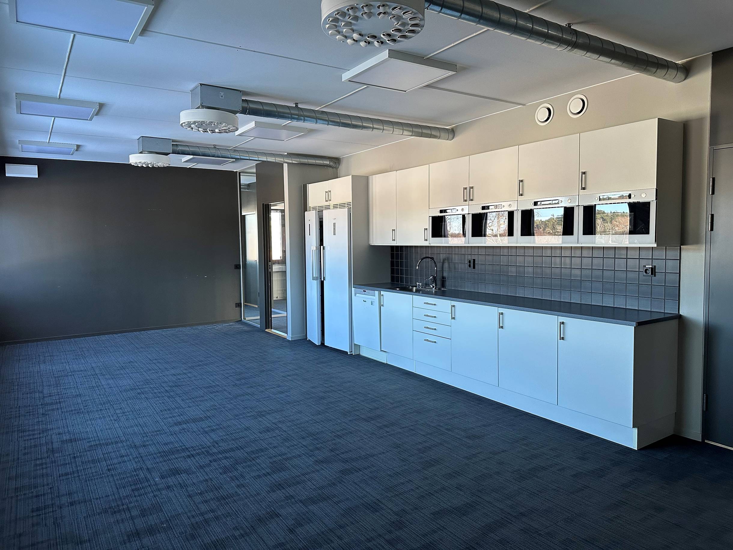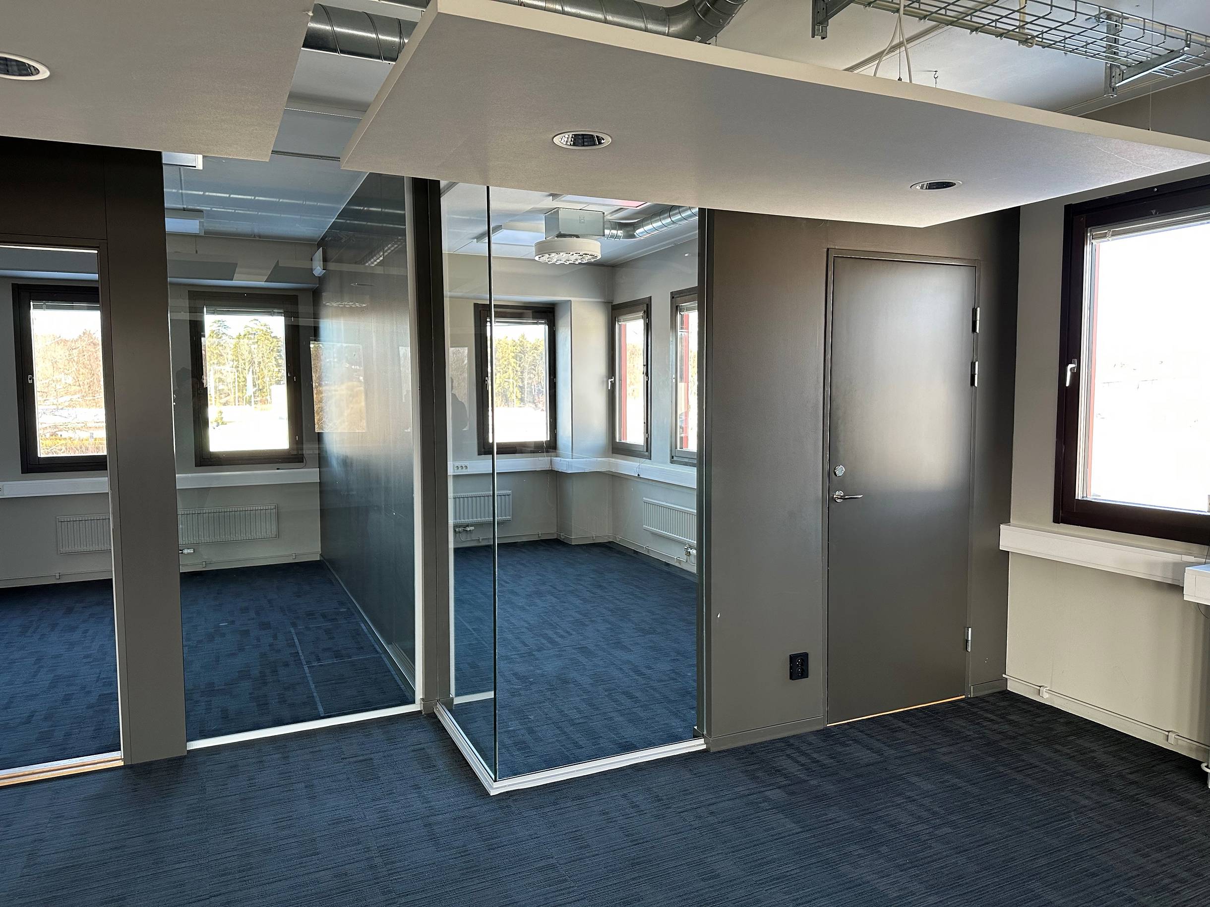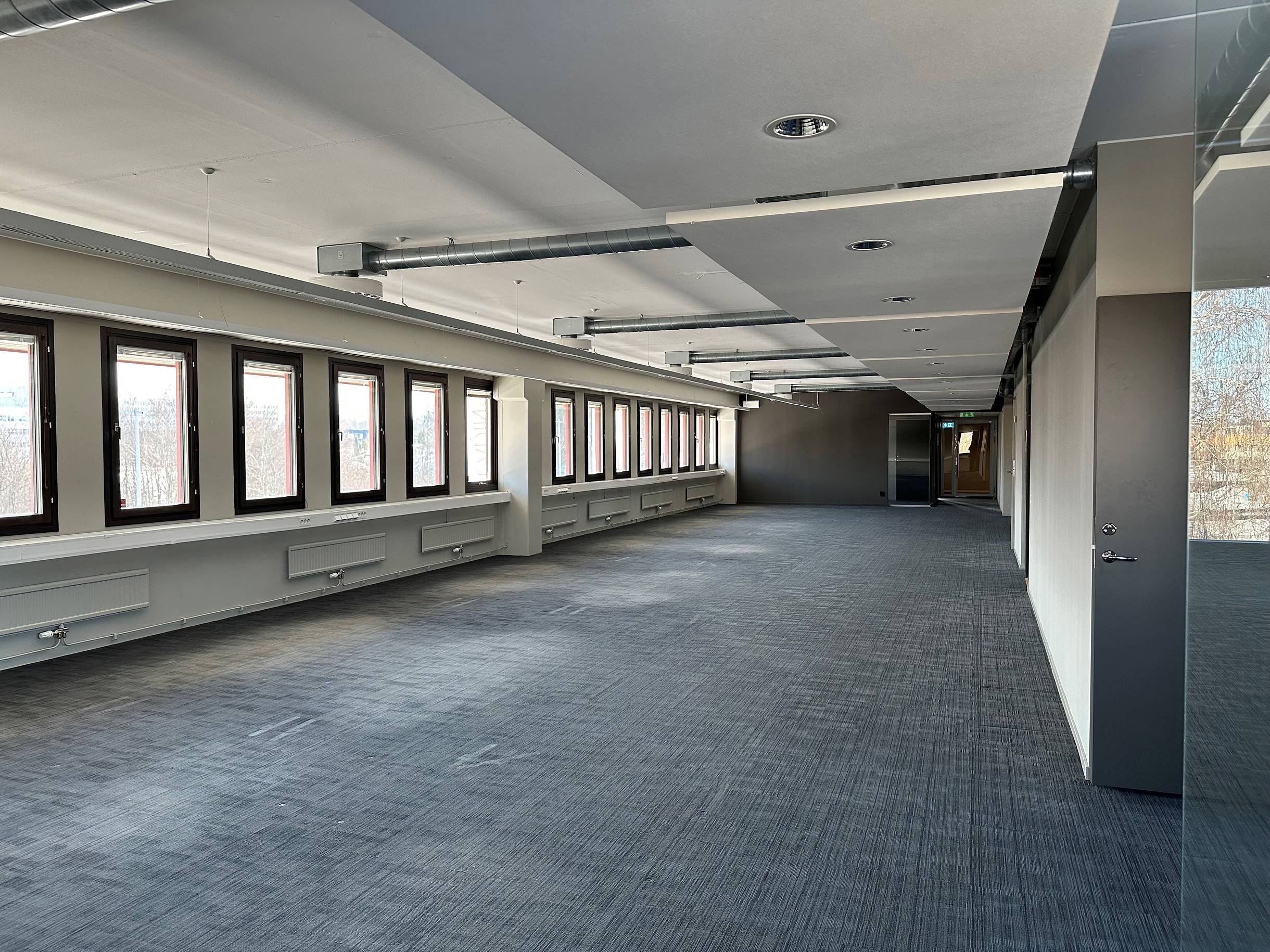 • Ljust & Öppet: Stora fönsterpartier i flera väderstreck badar det öppna kontorslandskapet i naturligt ljus, vilket skapar en inspirerande och trivsam arbetsmiljö.