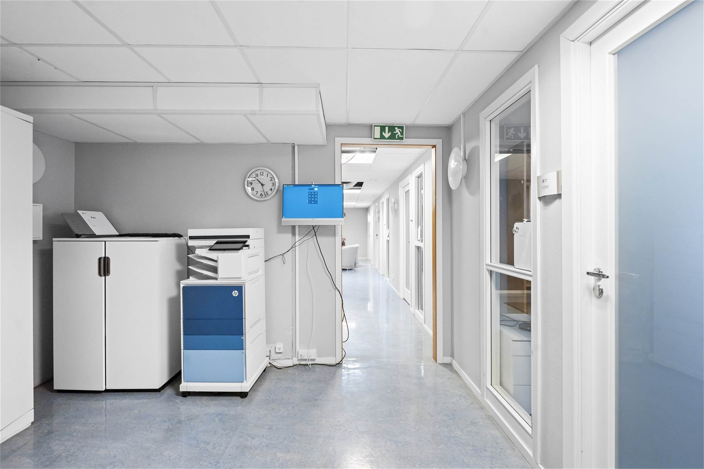 Du når det här moderna och fina kontoret via ett vältilltaget och fint trapphus, det finns även hiss som tar dig från markplan till kontoret. Denna lokal är fördelat på 2 plan med interntrappa, våningplanen är fördelade på 239 kvm respektive 459 kvm, varav 310 kvm av 459 kvm utgör en operationssal. Från trapphuset kommer du direkt in till foajén för kundmottagning, här finns det plats för soffgrupper och övrigt möblemang. Vidare finns det flertalet separata kontorsrum, stort konferensrum för 10-12 personer, personalrum med stort kök och matgrupp för 12-14 personer samt flera WC. Genomgående är det ett rymligt kontor med öppen planlösning och flertalet separata kontorsrum.