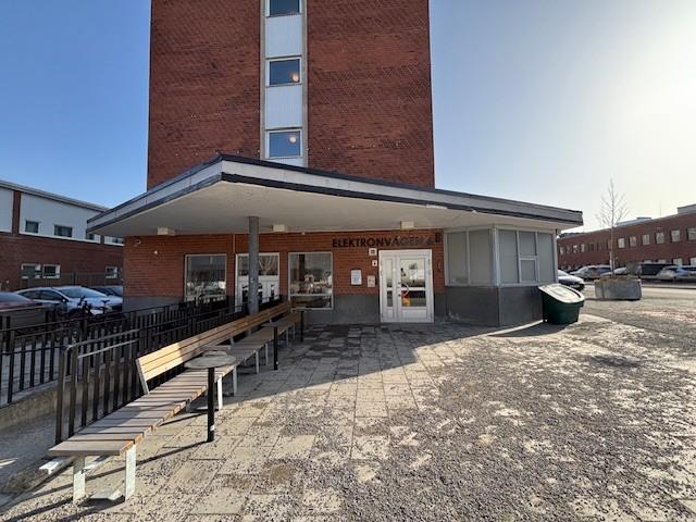 Ljust kontor som går att hyra i befintligt skick men kan även anpassas efter behov. Kontoret är på plan 5 dit du tar dig via hissar eller trapphuset direkt från entrén på Elektronvägen 6. Det finns gott om parkeringar i direkt anslutning till fastigheten. Fastighetens trapphus, hissar och entréer har nyligen renoverats för att bibehålla husets 60-tals karaktär och för att framhäva dom fina materialvalen. Möjlighet till skyltläge på fasaden väl synligt mot Huddingevägen.