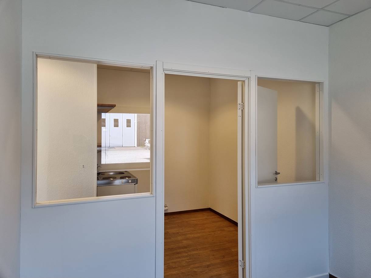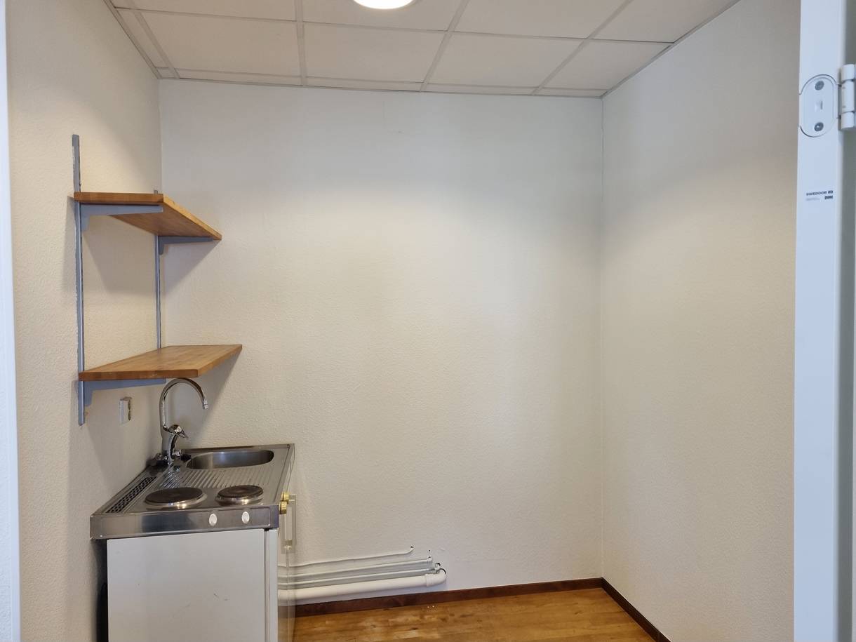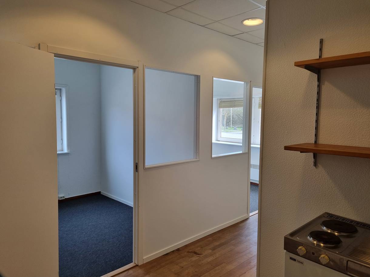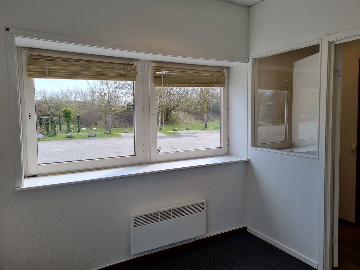 Litet kontor med parkering utanför dörren