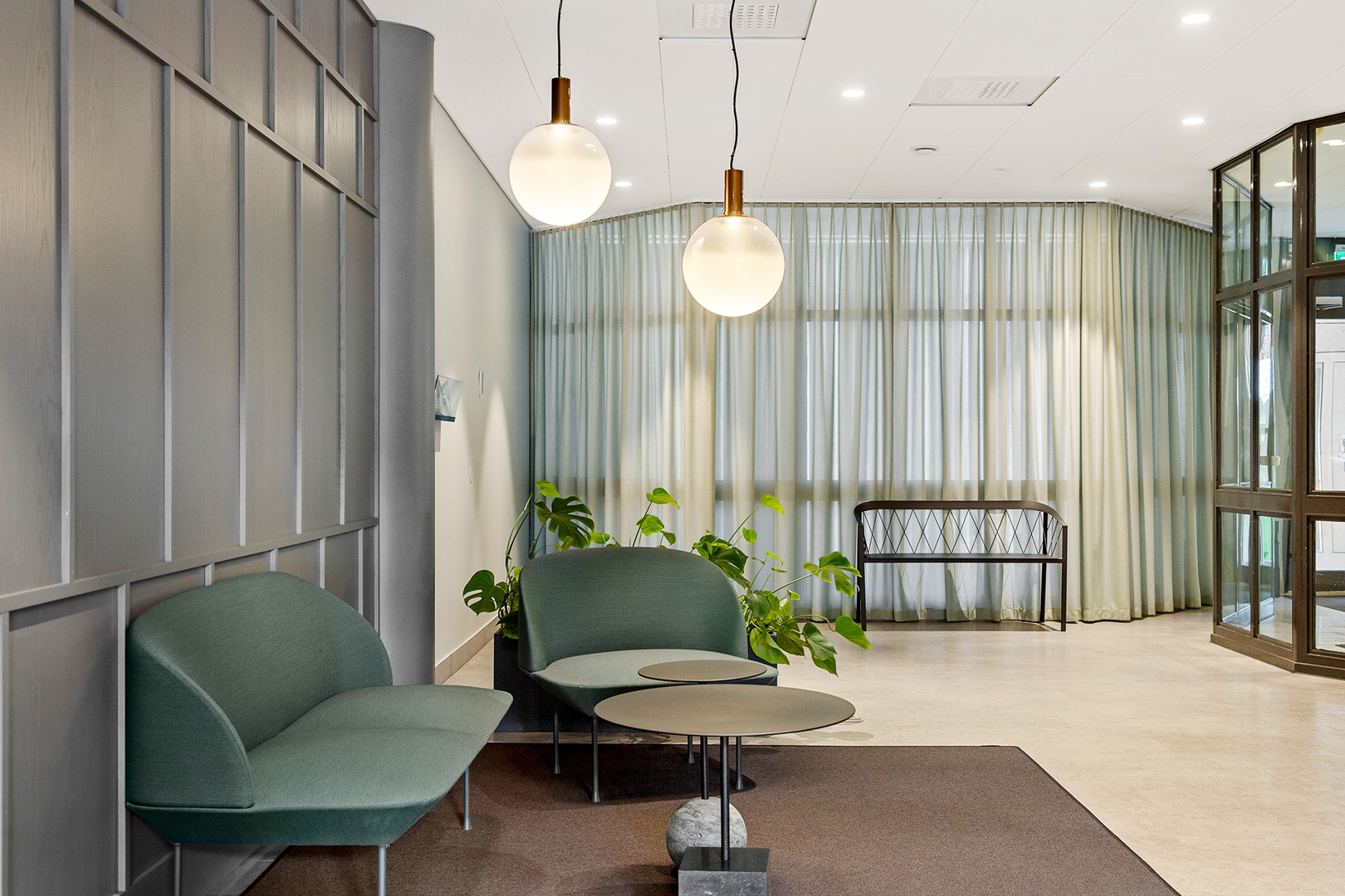 Interiören präglas av moderna materialval och en varm färgsättning som bidrar till en behaglig atmosfär för både medarbetare och besökare. Det är en lokal som kombinerar funktionalitet med stilren design, redo att anpassas efter ert företags behov.