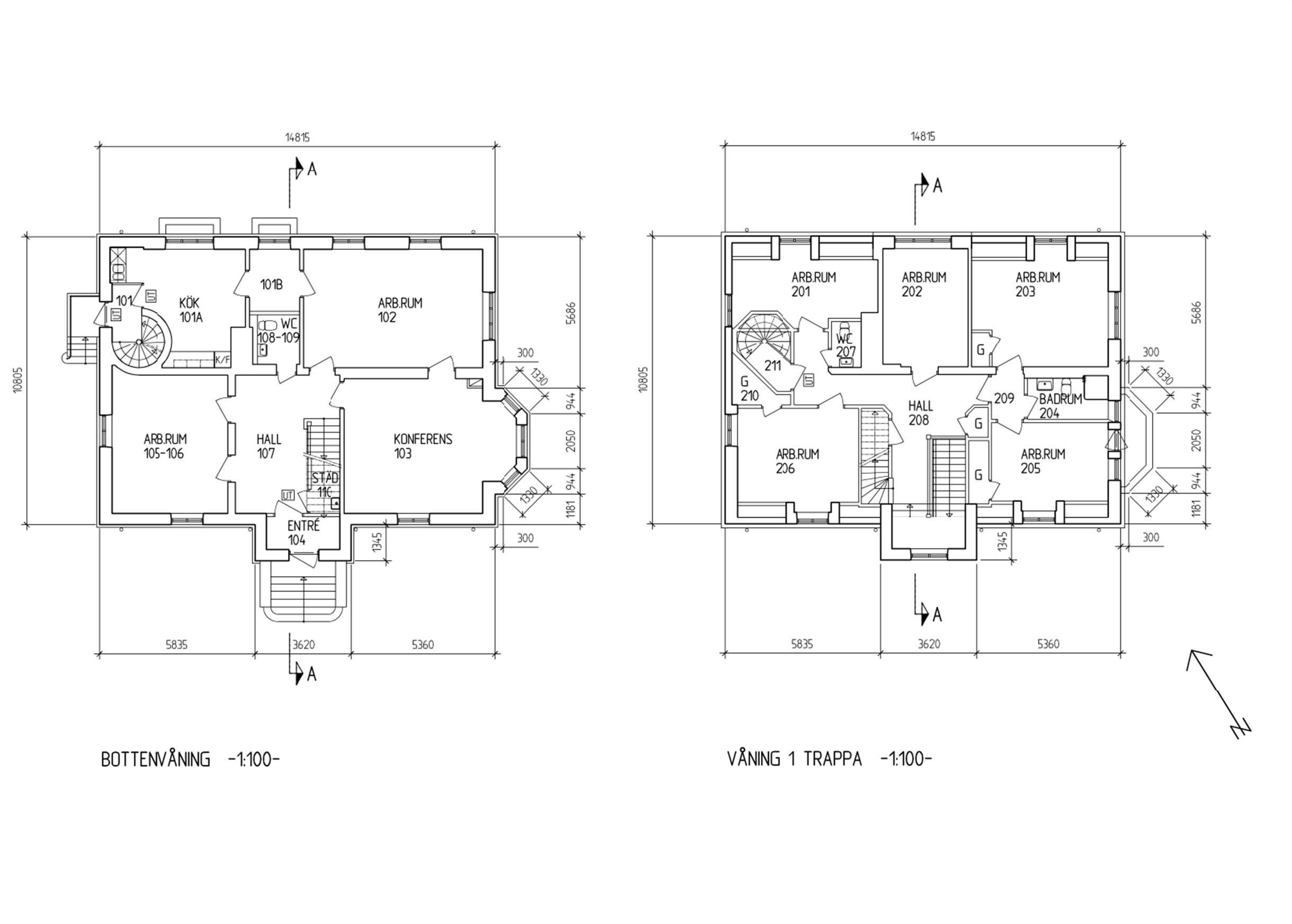 Inbjudande kontor på bottenplan med härligt ljusflöde genom hela lokalen. Här erbjuds flera enskilda kontorsrum för 1–4 personer. Separat pentry med matplats, trevlig loungehörna och rymligt konferensrum för kreativa sammankomster.