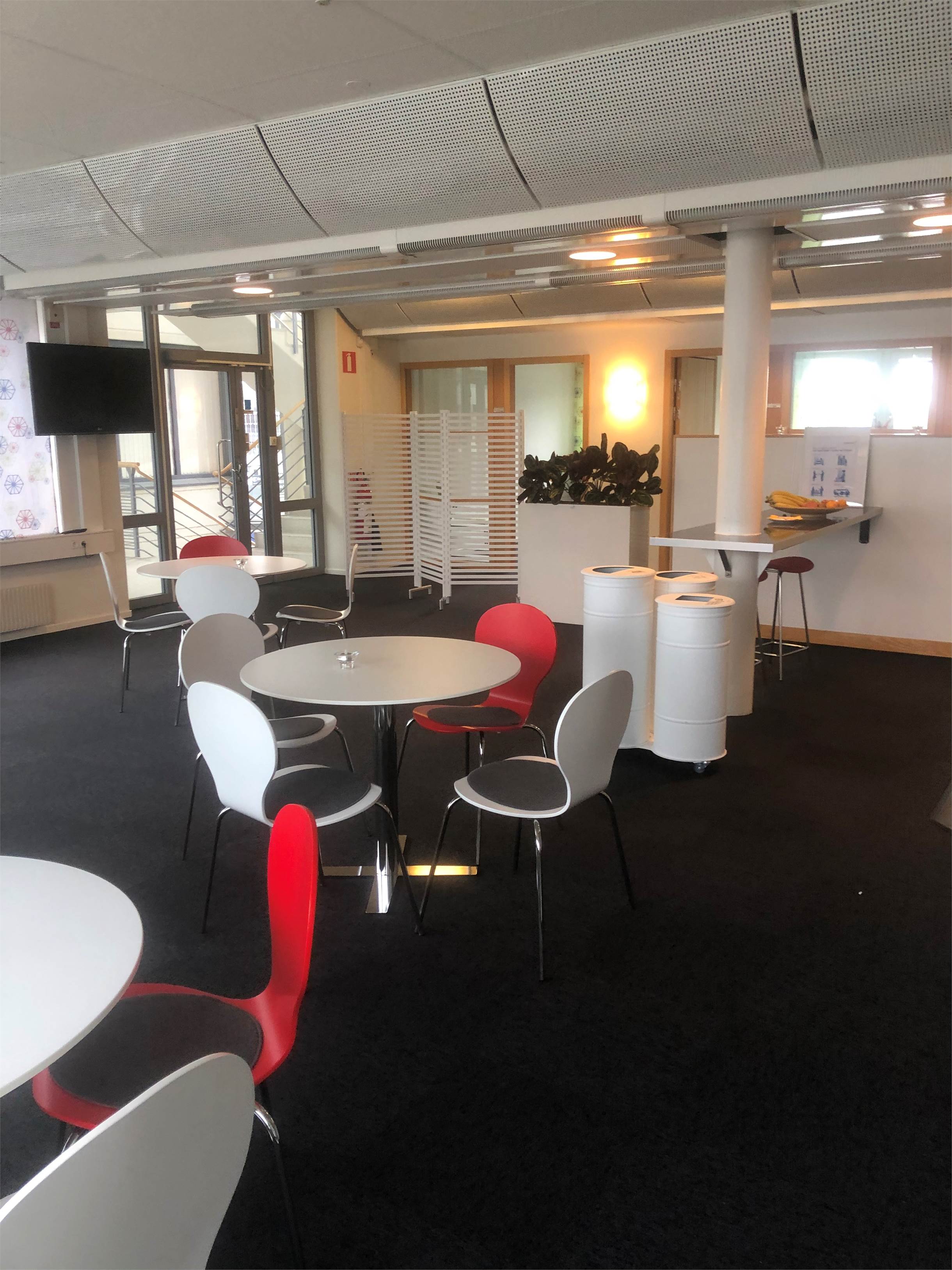 Vi har två lunchrestauranger, en konferensanläggning och en reception med ett serviceutbud.