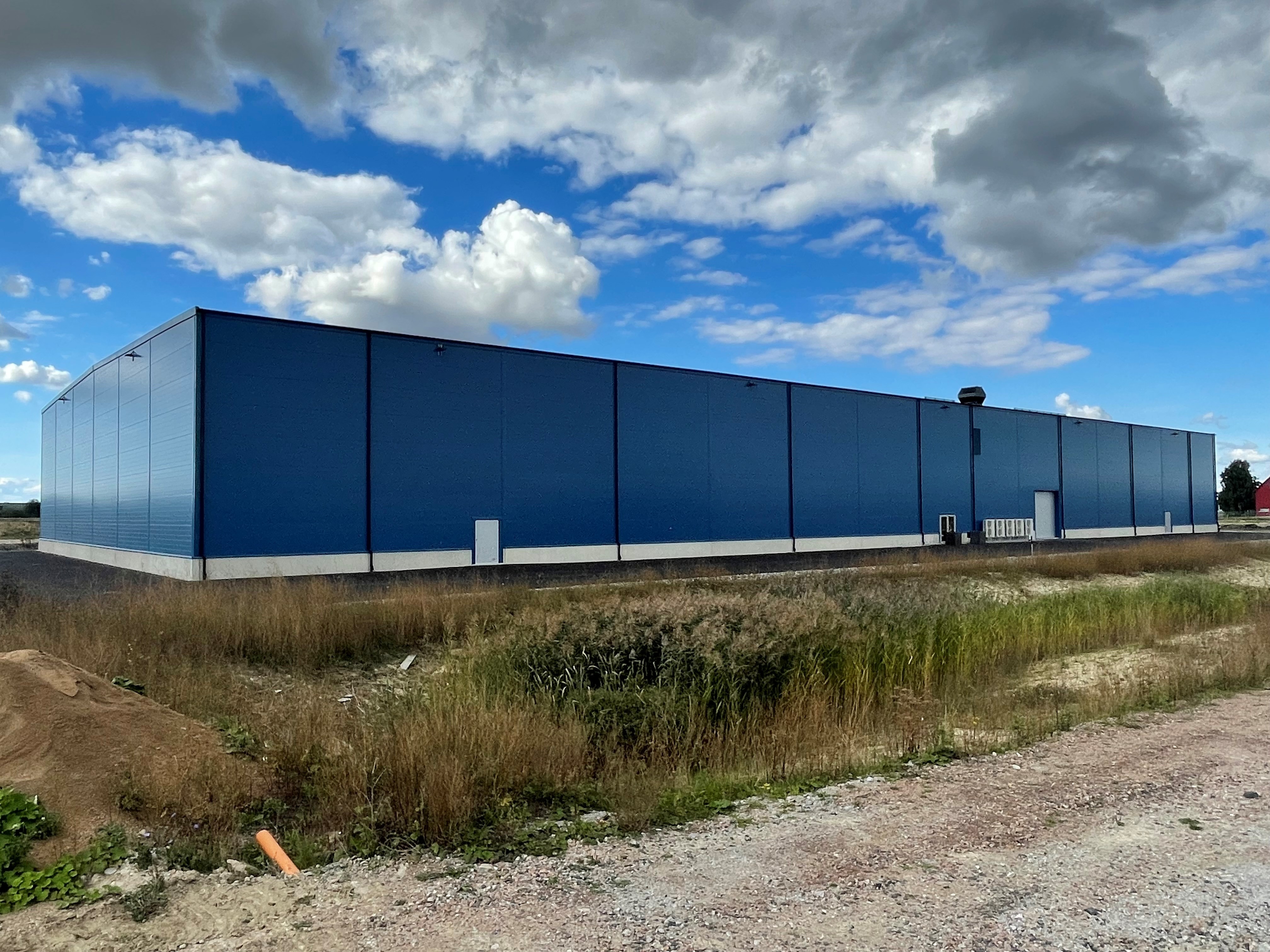 Lagerdelen är 4509 kvm och entresol på 250kvm med omklädningsrum, duschar och balkong.