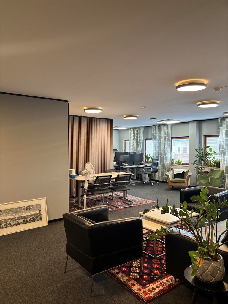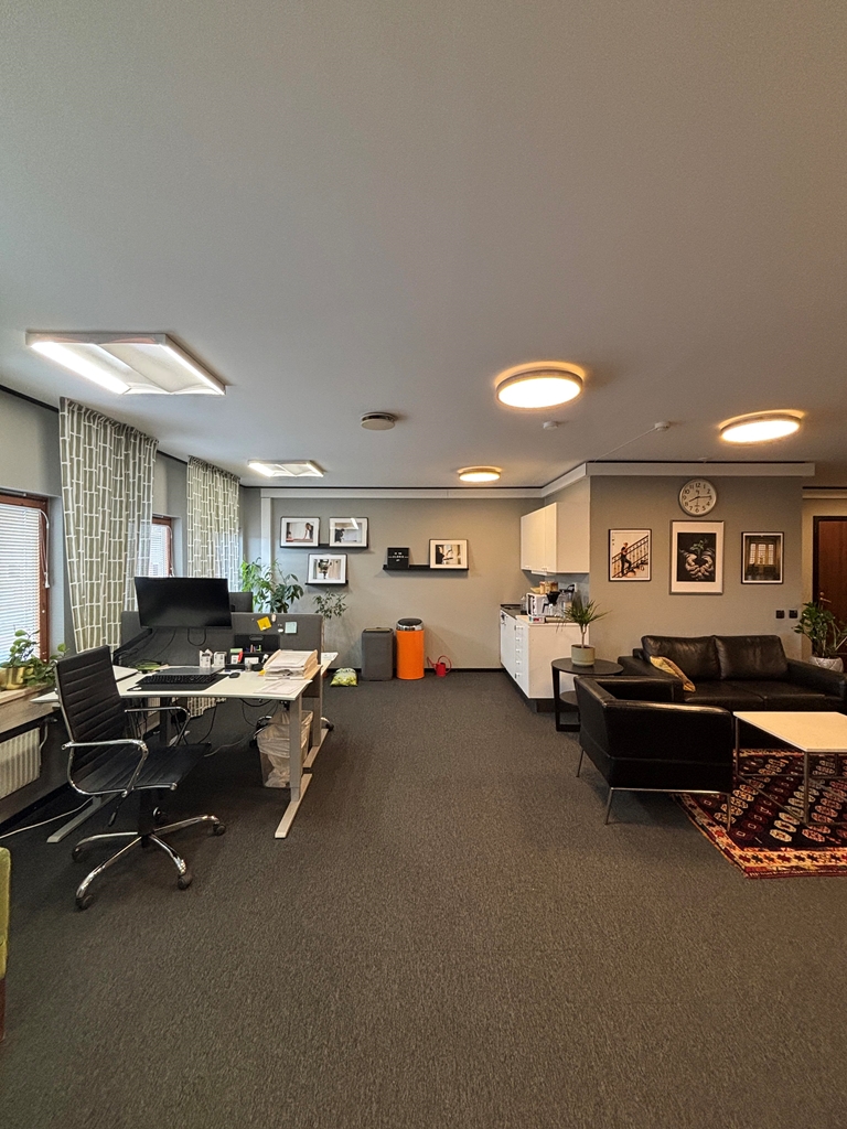 Lokalen är en kombilokal med en praktisk markport för lätt in- och urlastning. Genom ett trapphus tar man sig från lagerlokalen upp till kontorslokalen med gott om utrymme för möten och lunchpauser. Lokalen består av ca 85 kvm kontor och 135 kvm lager. Wc finns i lagerdelen samt i kontorsdelen.