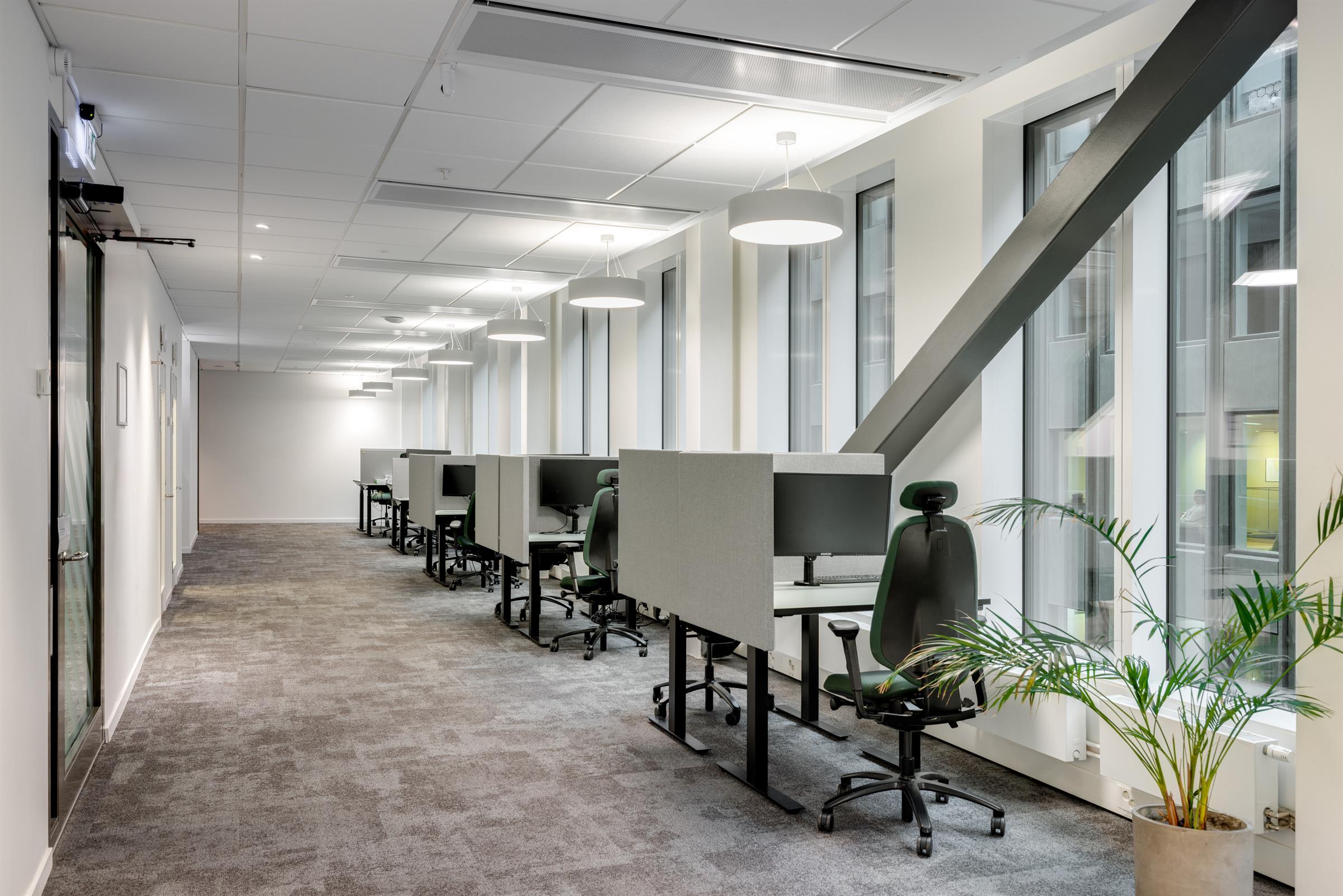 På Folkungagatan 44 har Vasakronan utvecklat en ny, modern byggnad som skapar en välkomnande stadsoas. Nu finns chansen att hyra oslagbart ljusa och trevliga kontorslokaler i Södermalms bästa läge. 1165 kvm på våning 1 tr Generös takhöjd, 2,75 m genomgående i lokalen