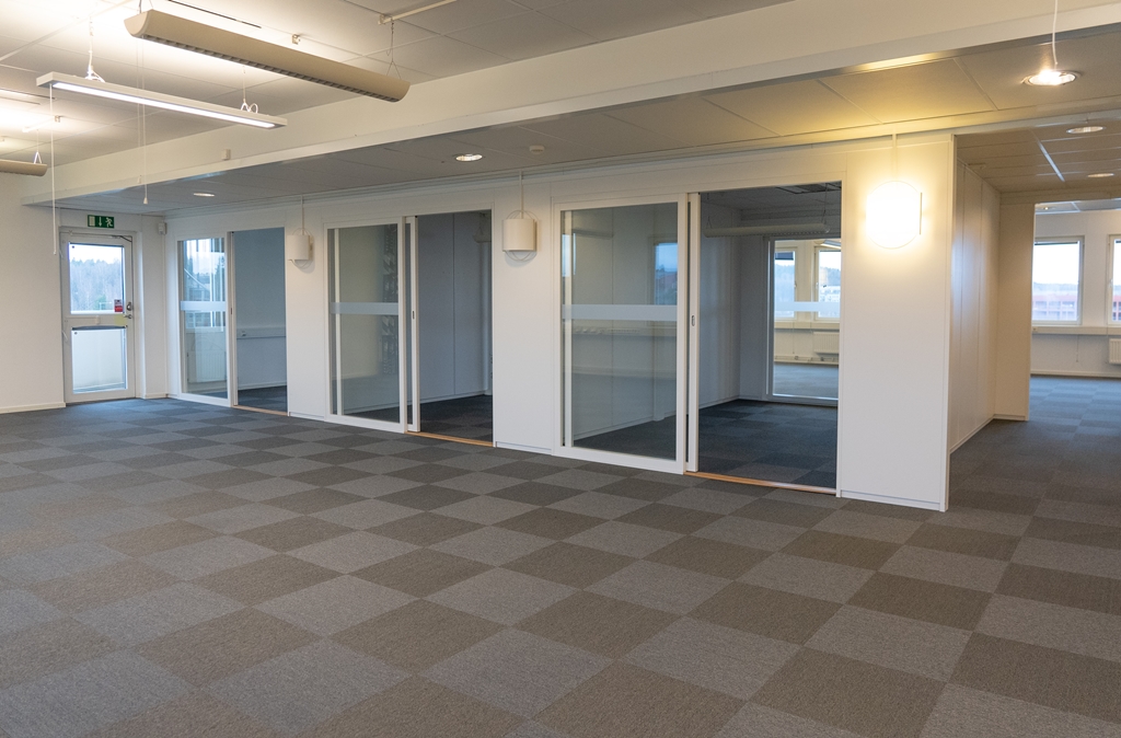 Kontorslokalen erbjuder en flexibel planlösning med både privata kontorsrum och öppna kontorslandskap, vilket ger en bra balans mellan fokus och samarbete. Lokalen kan anpassas efter hyresgästens behov, oavsett om ni önskar fler mötesrum, större öppna ytor eller en kombination av båda. Här finns möjligheten att skapa en arbetsmiljö som passar just er verksamhet!