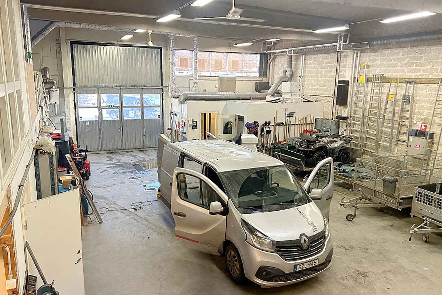 Stor lageryta/garage med tillhörande kontorsytor samt personalutrymmen.